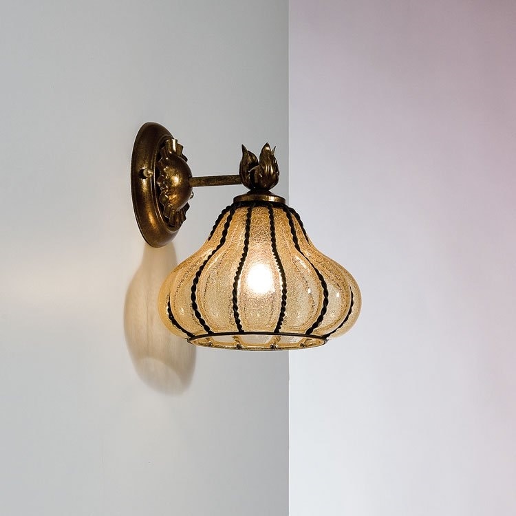 Applique lavorata a mano in vetro soffiato con le tecniche dei vecchi maestri vetrai di murano