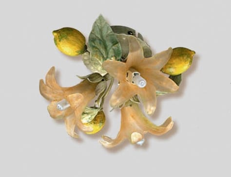 Faretto con 3 luci, con decorazioni floreali dipinte a mano.