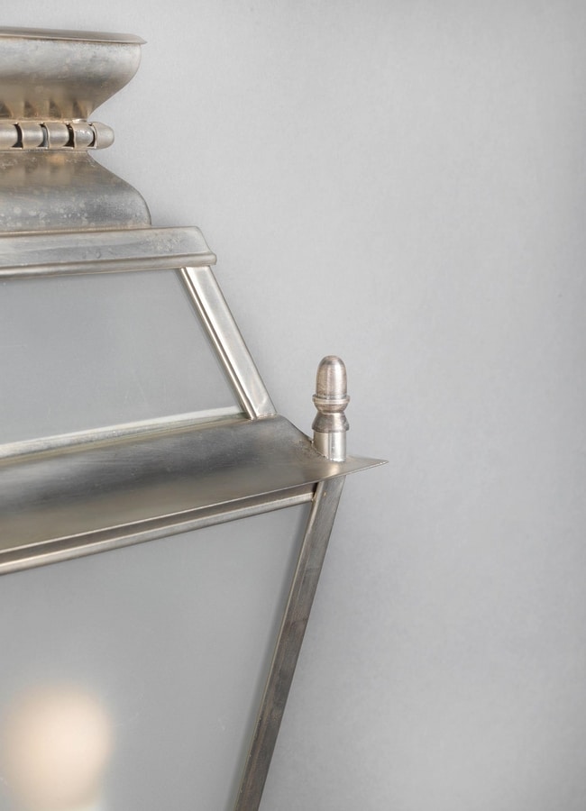 Mezza lanterna in ottone da parete con vetro trasparente, zincato e verniciato a polvere