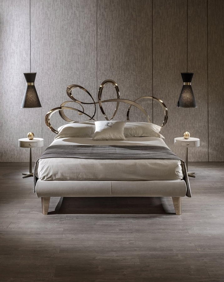 Letto con testiera decorativa in metallo