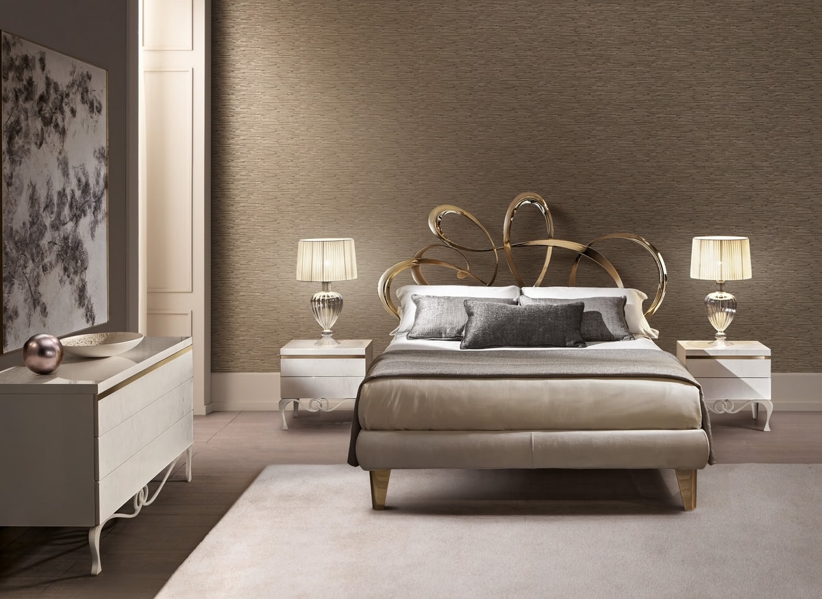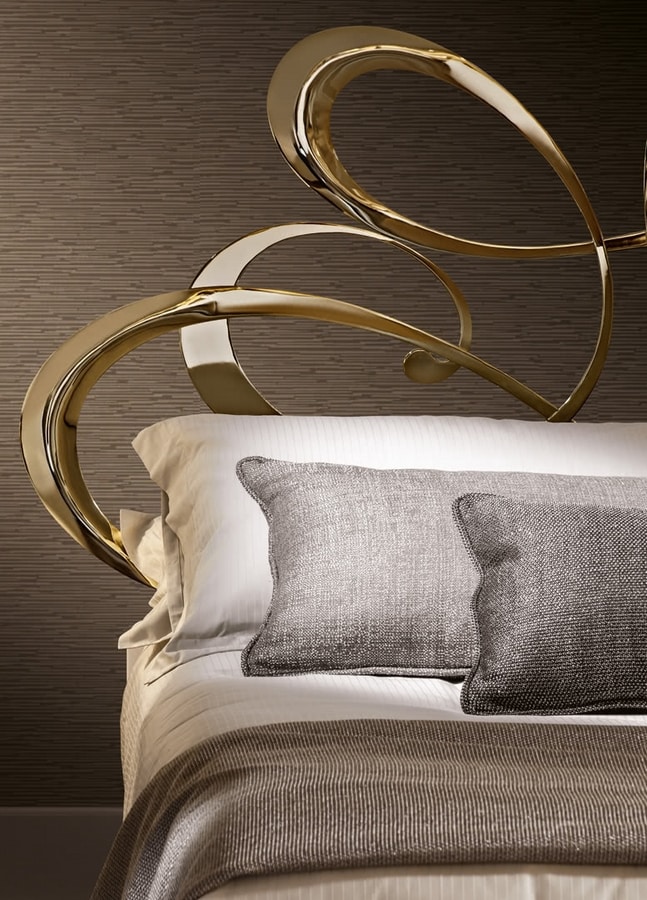 La struttura in metallo è realizzata in bagno di galvanica con finitura oro pallido; il giroletto imbottito può essere rivestito in tessuto, velluto, pelle, ecopelle o con un tessuto fornito dal cliente (sfoderabile). Le volute dorate della testata rimandano a un mondo onirico e altamente decorativo, pur mantenendo tutta la praticità e la solidità di un letto in metallo. Il letto Dolcevita è disponibile in varie dimensioni per reti da cm: 160x200 (letto matrimoniale), 180x200 (letto matrimoniale) e 200x200 (letto king size) anche nella versione con box contenitore. Su richiesta, è possibile realizzarlo anche fuori misura per materassi di lunghezza cm 210, 220, 230 o altre dimensioni richieste dal cliente; un letto più lungo per offrire il massimo comfort anche a persone molto alte.