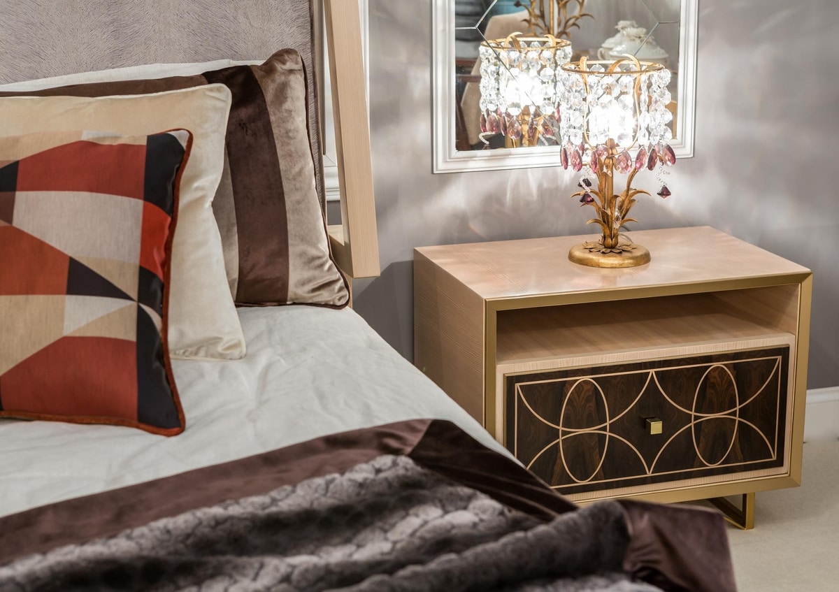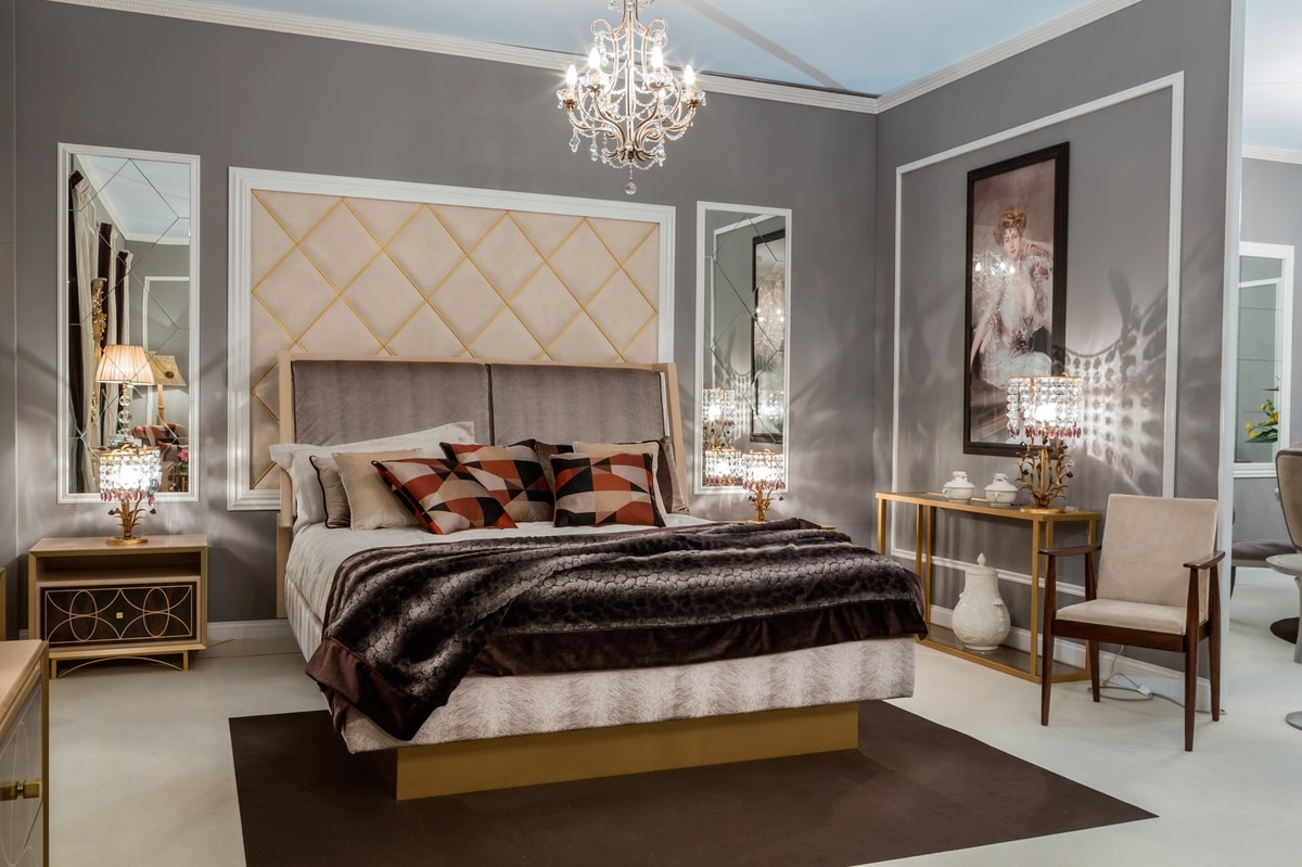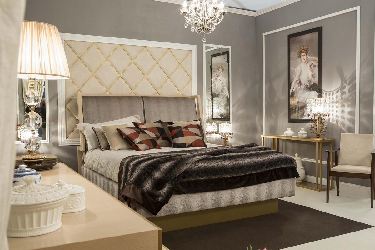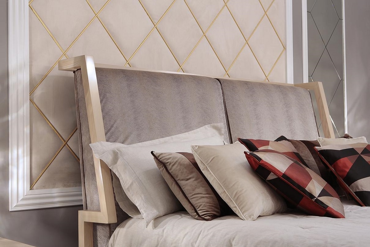 Elegante letto con imbottitura liscia. Struttura in legno.