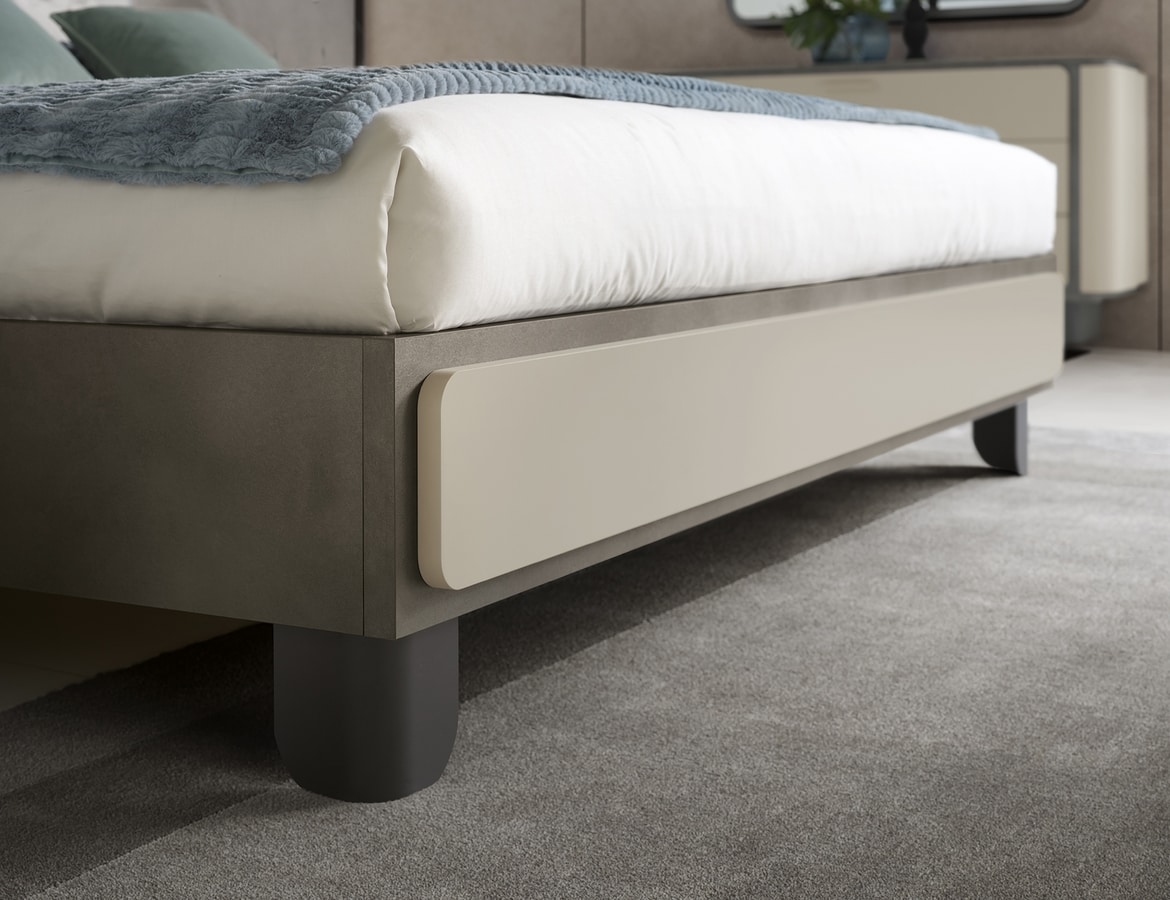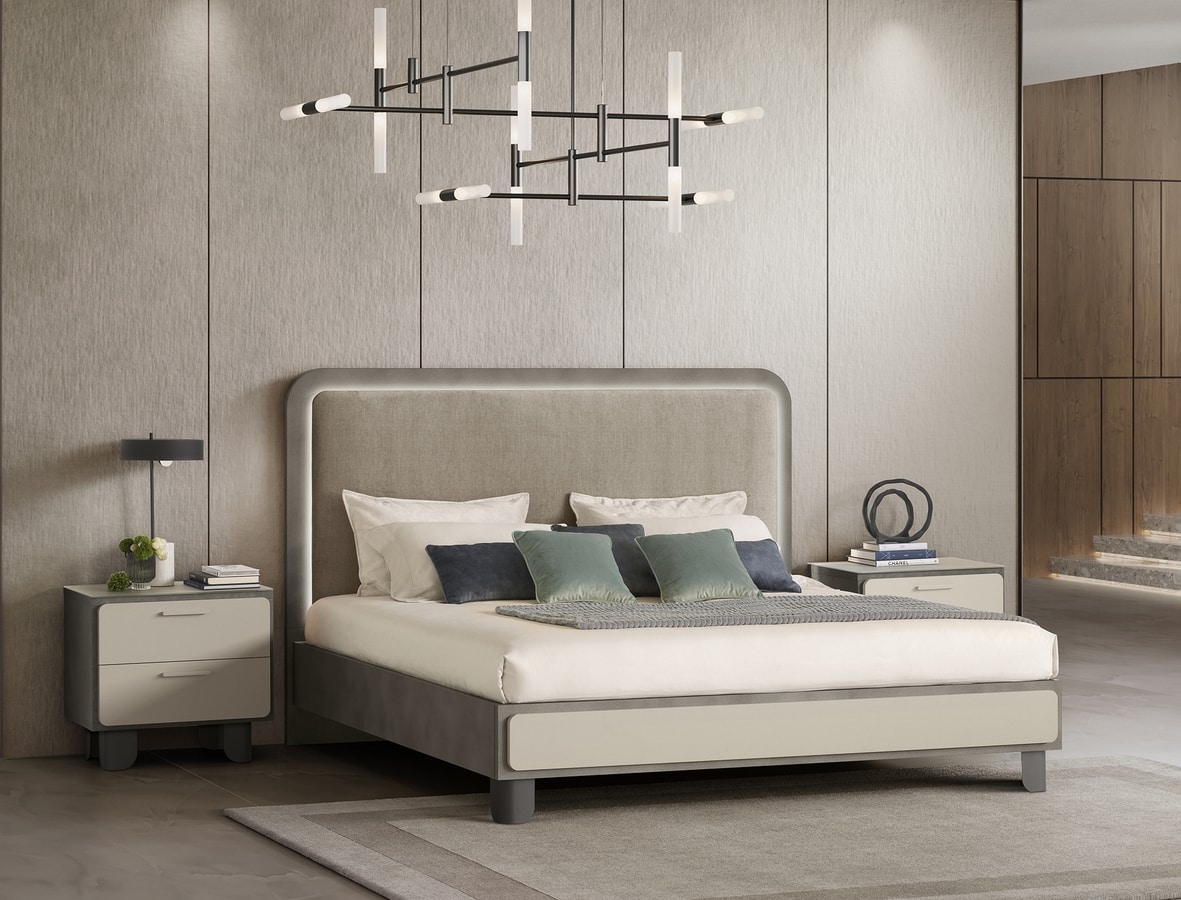 Richiedi prezzi Prodotti similiIl letto Perla è disponibile in due eleganti varianti: una con fascione e pediera in contrasto grigio perla e antracite, l’altra interamente imbottita, per un’estetica morbida e avvolgente che dona stile, comfort e armonia alla zona notte.