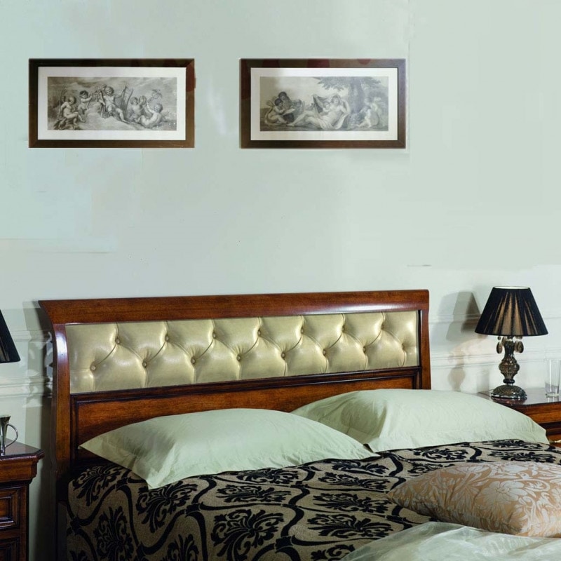 Richiedi prezzi Prodotti similiLetto a due piazze con testata imbottita in ecopelle con lavorazione a capitonnè. Pediera con basamento sagomato, come anche la parte superiore, dotato al centro di un leggero intaglio.