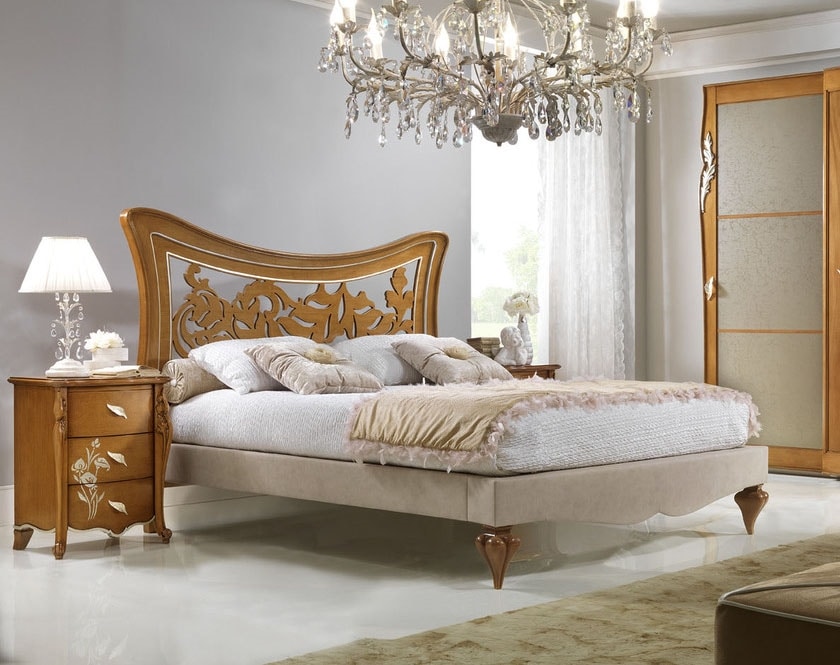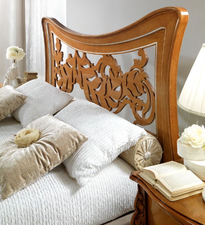 Letto in legno con testiera traforata