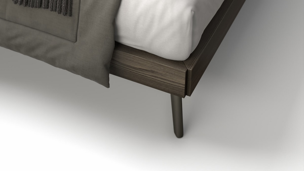Letto con testiera e giroletto in legno, in stile moderno