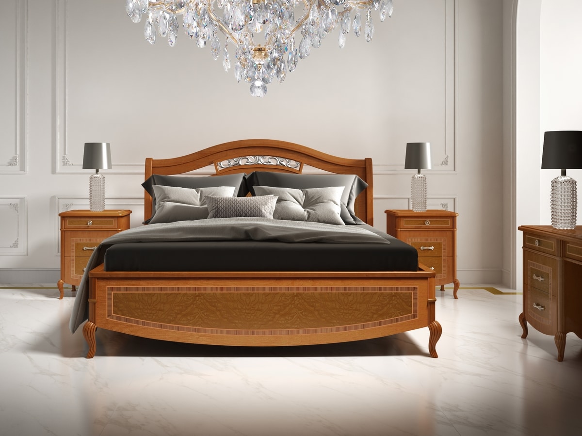 Letto in legno, con inserti in radica