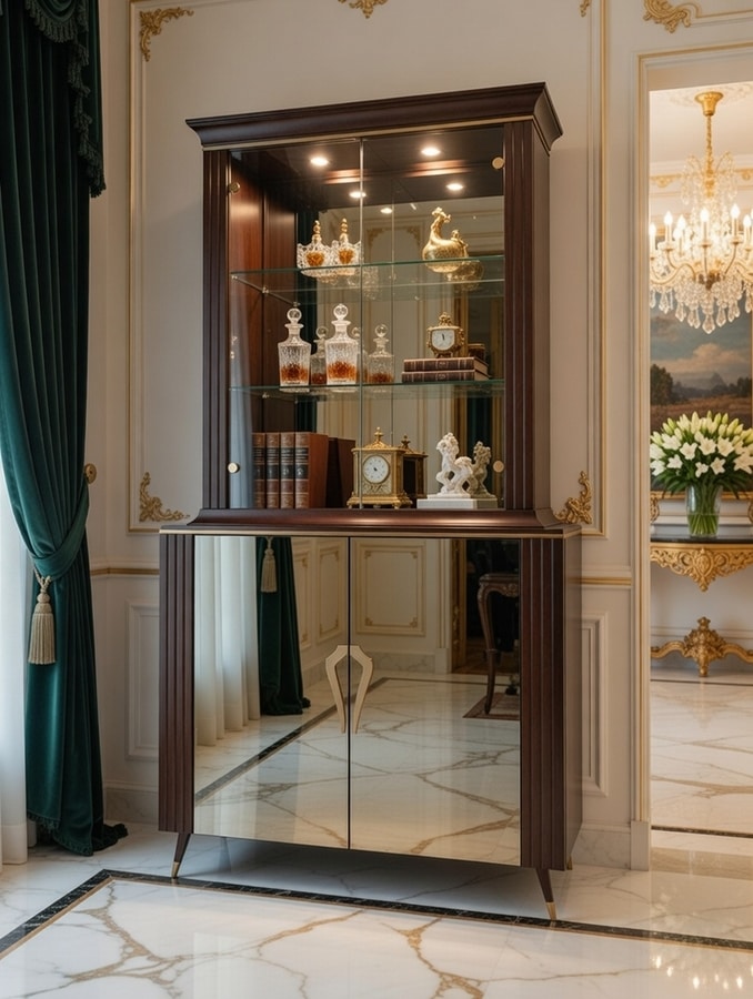Raffinata vetrina bar con ante a specchio