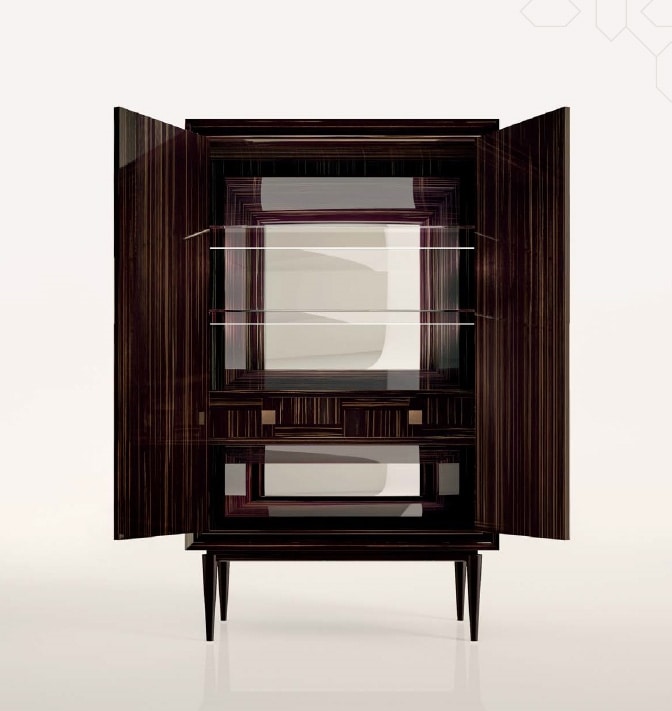 Mobile bar in legno, finitura ebano o laccata cappuccino