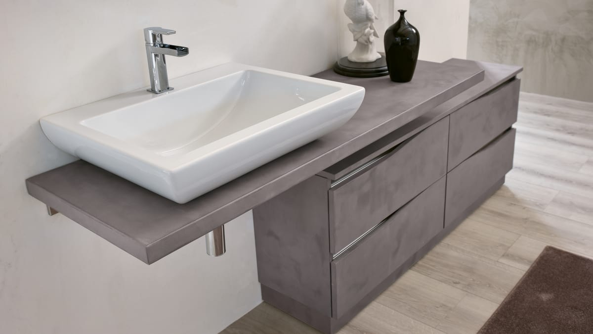 Prodotti similiArredo modulare completo per bagno con lavabo da appoggio.