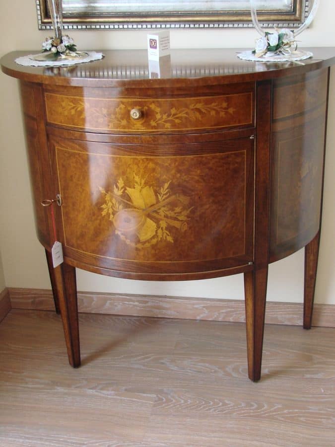 Servant mezzaluna 1 anta e cassetto in radica e intarsi.
