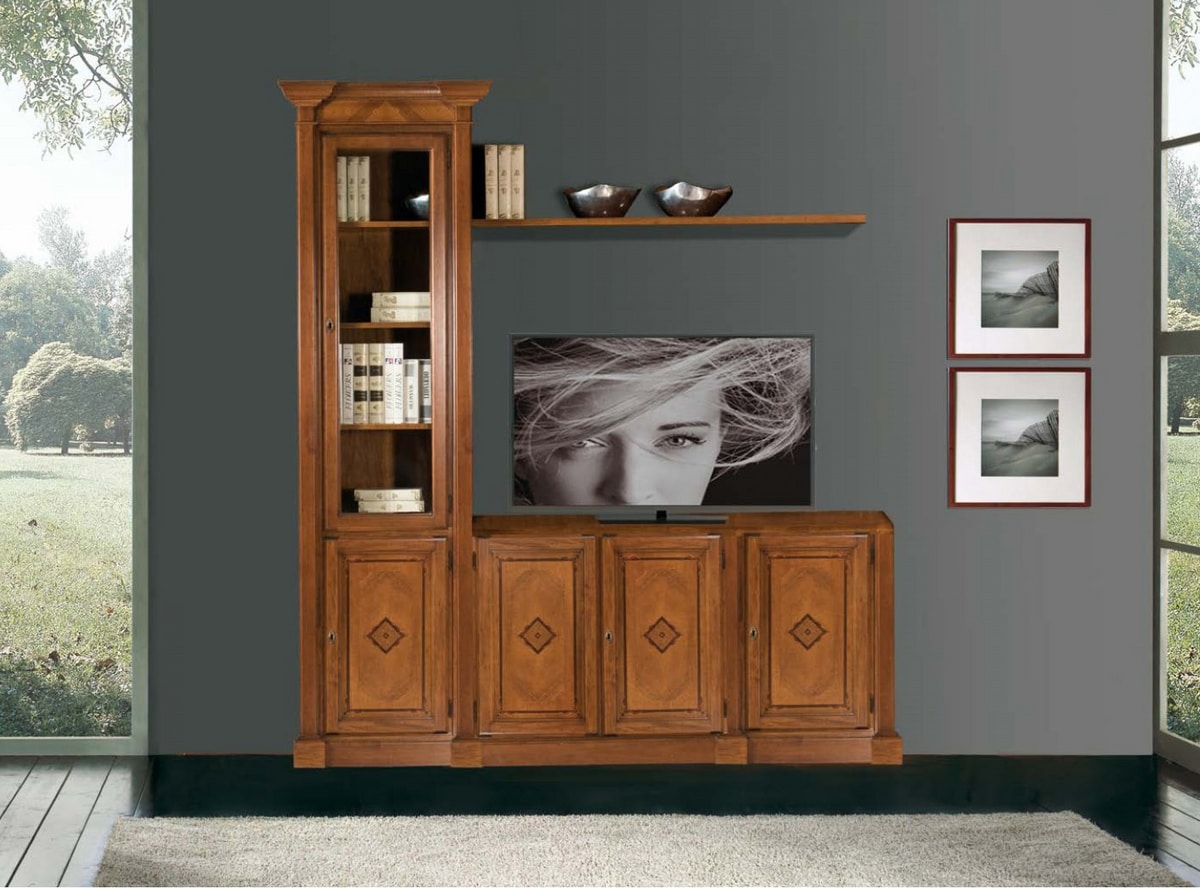 Parete Delux con base noce intarsiata. Adatto per ingresso e soggiorno.