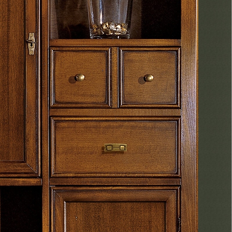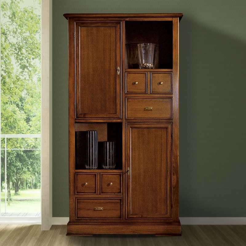 Richiedi prezzi Prodotti similiDispensa due porte quattro cassetti di cui due realizzati con frontale a doppia cornice. Frontale del cassetto rifinito con tondino e anta legno con cornice abbinata in legno massello. Vani a giorno in posizione asimetrica.