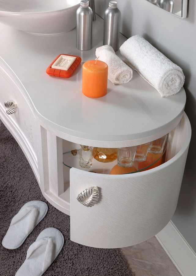 Mobile per bagno con base curva, fianchi apribile.
