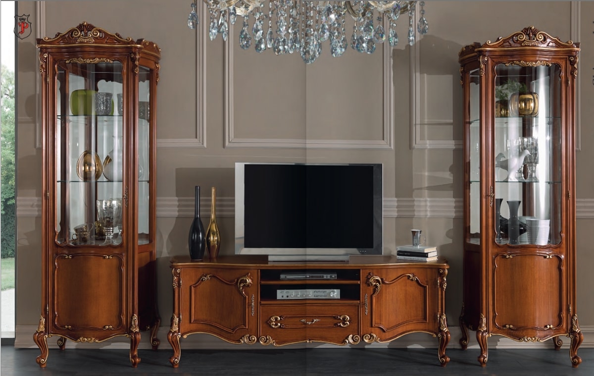 Vetrinette ad una anta e mobile porta tv LCD in stile Roccocò.