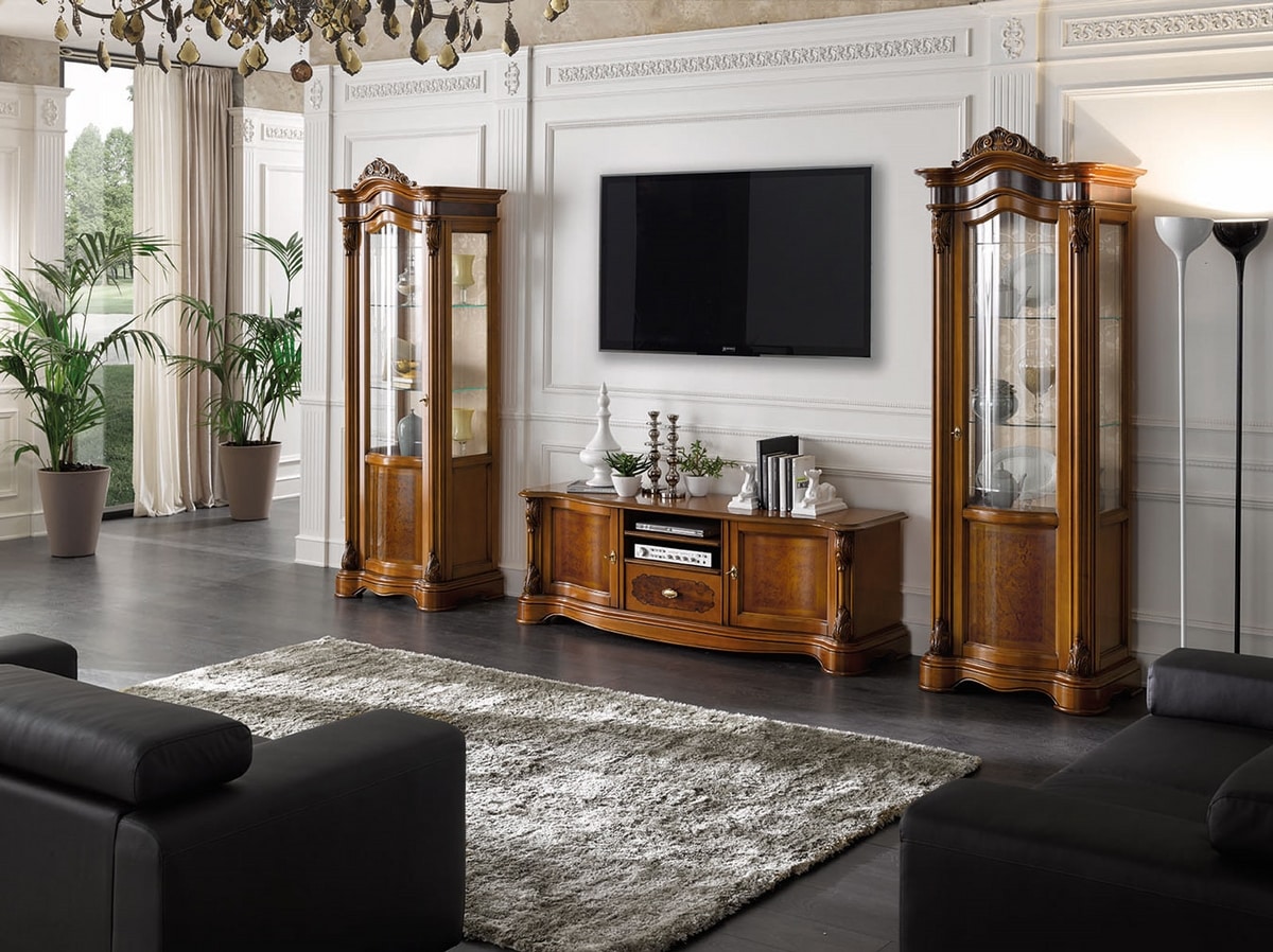 Mobile porta tv con 1 cassetto e 2 ante. Frontali in radica e struttura in legno.