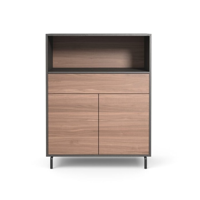Richiedi prezzi Prodotti similiSistema giorno componibile con piano in legno (rovere o noce), fenix, hpl o ceramica e piedini a scelta (da 5 a 17 cm) in legno o metallo. Ante con apertura push-pull e cassetti con sistema Blumotion ammortizzato. Possibilità di ante e cassetti in fenix o hpl. Frontali interni a filo struttura.