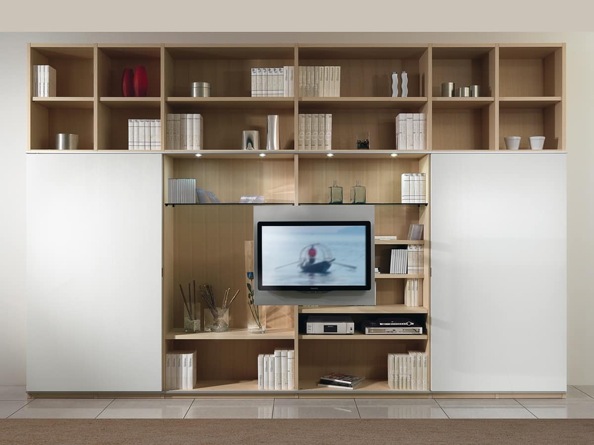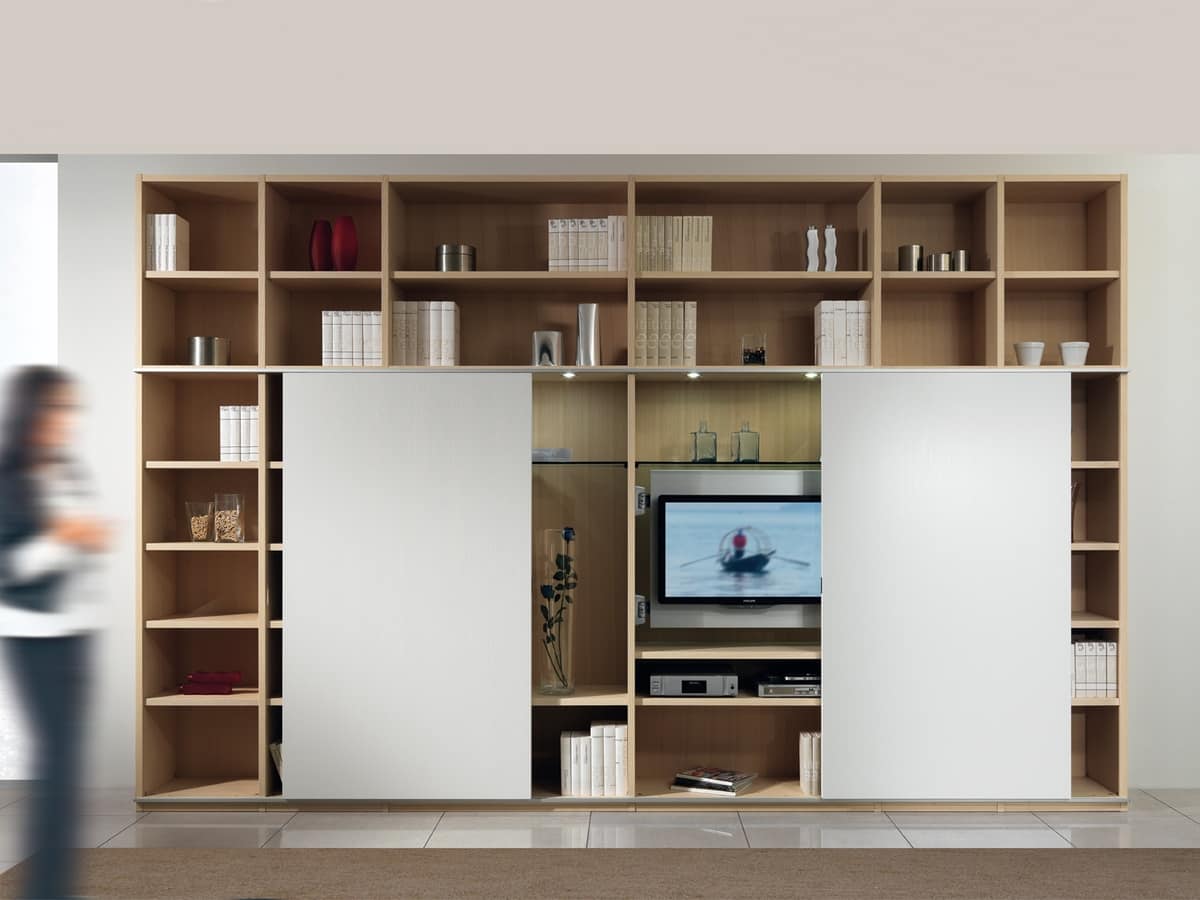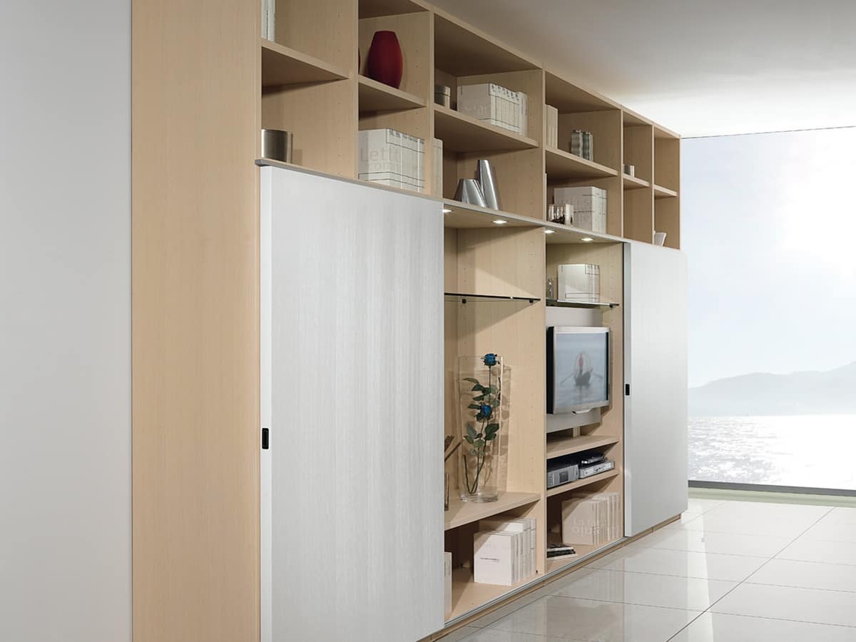 Richiedi prezzi Prodotti similiStruttura modulare per arredamento salotto con porte scorrevoli, in stile essenziale.