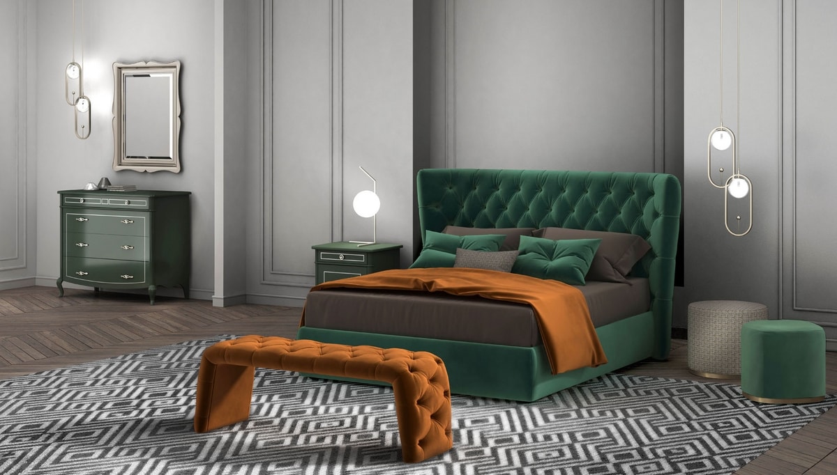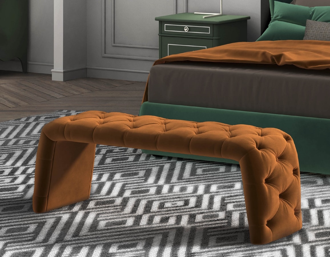 Panca completamente rivestita, con imbottitura capitonnč.