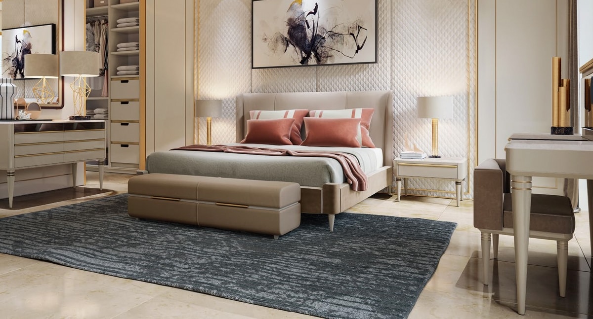 Panca imbottita per camera da letto, con decori dorati