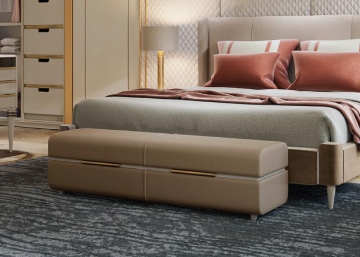 Panca imbottita per camera da letto.