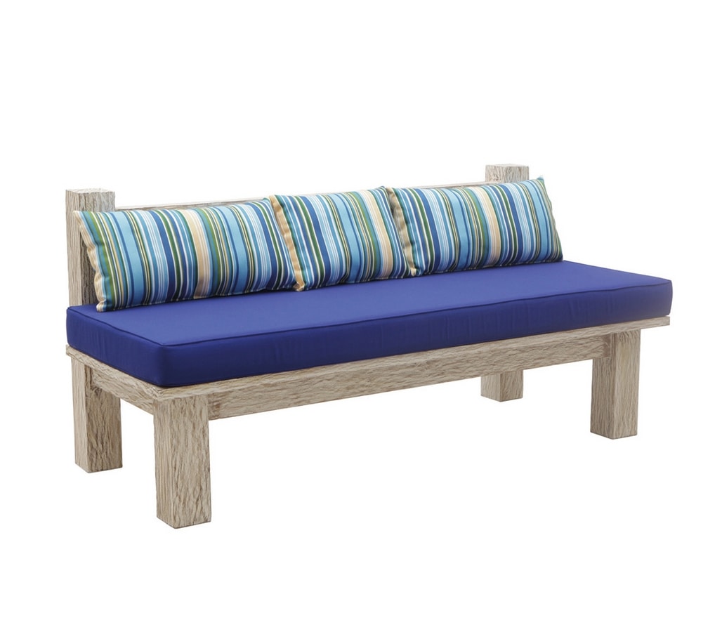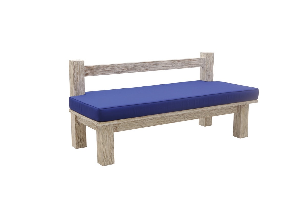 Panca due posti in teak massiccio con finitura white sand esclusiva de Il Giardino di Legno. La panca White Sand ha una finitura molto originale e caratteristica che richiama il disegno del vento lasciato sulla sabbia, ruvida al tatto e magnifica se abbinata a colori accesi che ne risaltino l’originalitŕ.