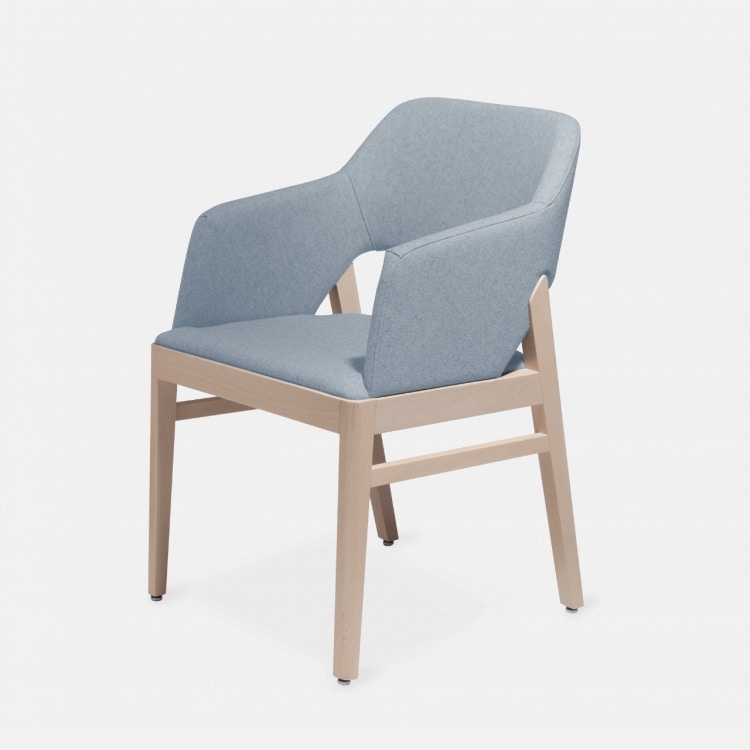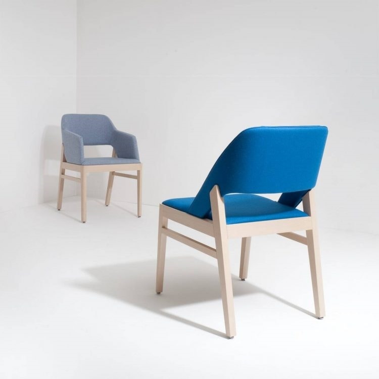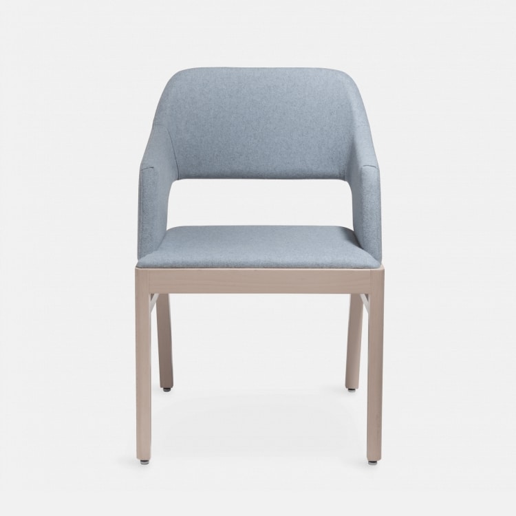 Alba ha una struttura in legno di faggio disponibile nelle nostre colorazioni standard o nelle finiture personalizzate. La seduta e lo schienale in espanso ignifugo sono rivestiti con i nostri tessuti a scelta o in tessuto Cliente.
