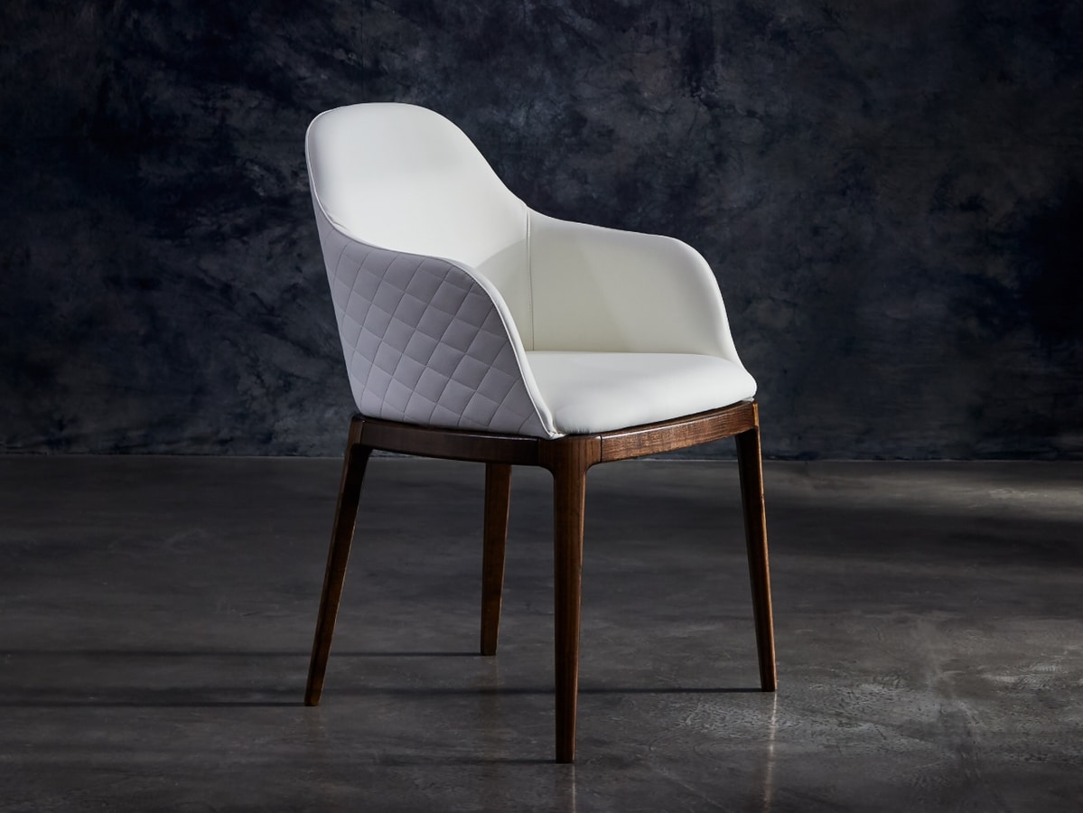 Prodotti similiSofia è una sedia che racconta la bellezza del legno attraverso una struttura slanciata, scolpita in massello con rigore e armonia. Il disegno, asciutto e raffinato, si completa con una seduta morbida e accogliente, pensata per offrire comfort senza rinunciare alla pulizia formale. Disponibile con o senza braccioli, Sofia si adatta con disinvoltura a spazi domestici o contract, mantenendo sempre un profilo alto in termini di stile e funzionalità. La versione Couture arricchisce ulteriormente la proposta con una preziosa trapuntatura romboidale sul retro dello schienale: un dettaglio sartoriale, frutto di un’accurata lavorazione artigianale, che esalta l’identità del progetto. Sofia non è solo una sedia, ma un gesto di design che unisce proporzione, matericità e cura costruttiva, interpretando con coerenza la filosofia Julia Italia: equilibrio perfetto tra essenza e carattere.