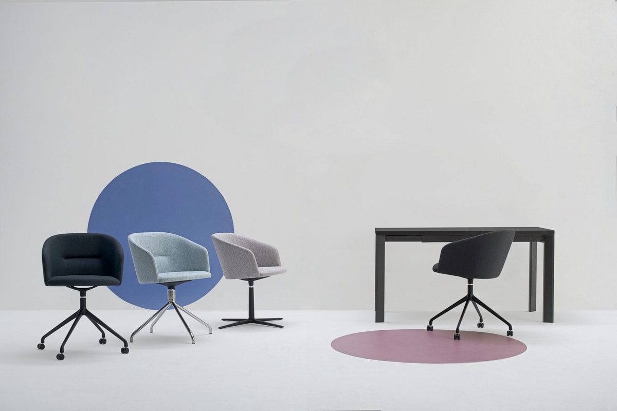 Le versioni girevoli delle poltrone DORY danno vita a oggetti di design eleganti e versatili, caratterizzati da unimbottitura morbida e confortevole. Le sedute perfette per un contesto d ufficio e home office.