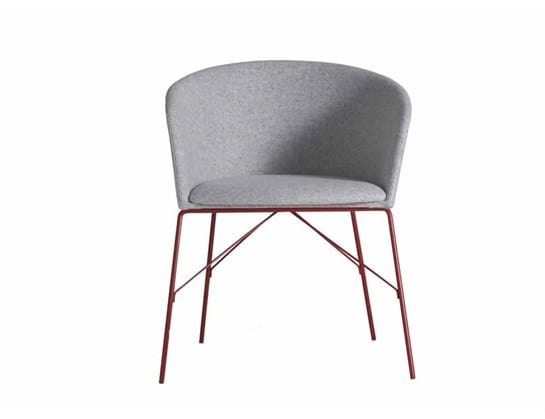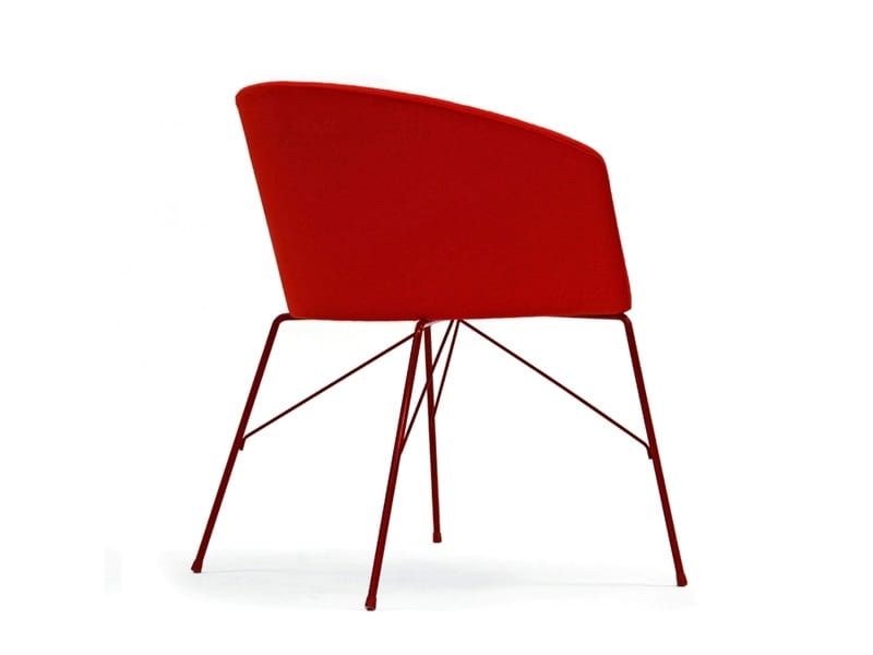 Poltroncina con sedile e schienale provvisti di imbottitura sottile. Struttura in tondino di ferro cromato lucido, oppure verniciato a polveri epossidiche nei colori nero Ral 9011, bianco Ral 9010 o rosso Ral 3000. Rivestimento in tessuto, vinilpelle o pelle, anche in versione ignifuga; rivestimento possibile anche con materiale inviato dal cliente. Poltroncina disponibile anche con l'imbottitura di spessore maggiorato (mod. Moon Bold 664TNS).