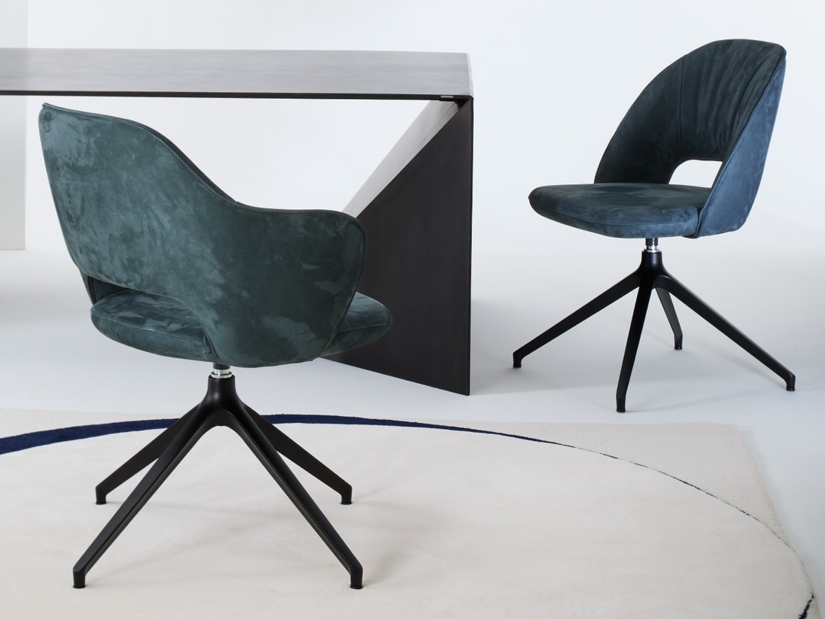 Poltroncina imbottita, con base girevole in metallo