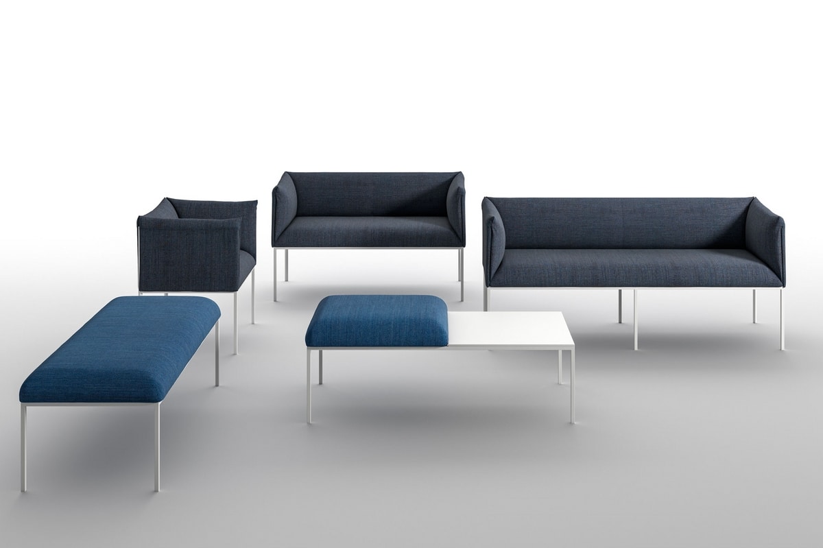 Sharp è una collezione di imbottiti pensata per i piccoli spazi, in particolare d’attesa. Il nome allude alle sue linee nette ed essenziali, ma anche all’intelligenza di un sistema che si pụ combinare in base alle esigenze, accostando tra loro i diversi moduli per dare vita ad ambienti multifunzionali o suddividere aree complesse. La struttura sottile è in tubo quadro d’acciaio, da interpretare in base allo stile del contesto scegliendo tra le molte finiture a catalogo, dall’eleganza minimale del nero alla sofisticata preziosità di oro e ottone. La seduta, che esternamente richiama le linee razionali della base, verso l’interno ha invece forme morbide e tondeggianti che invitano alla seduta. Merito della cuscinatura imbottita, tappezzata artigianalmente in tessuto, pelle o ecopelle. La collezione si compone di poltrona, divano a due e tre posti, panca e panca con tavolino integrato.
