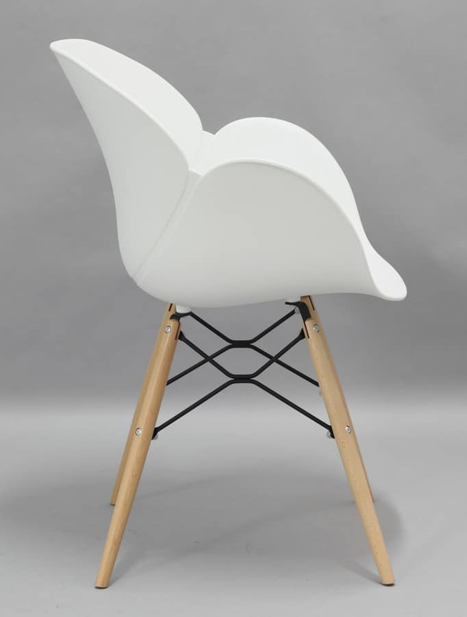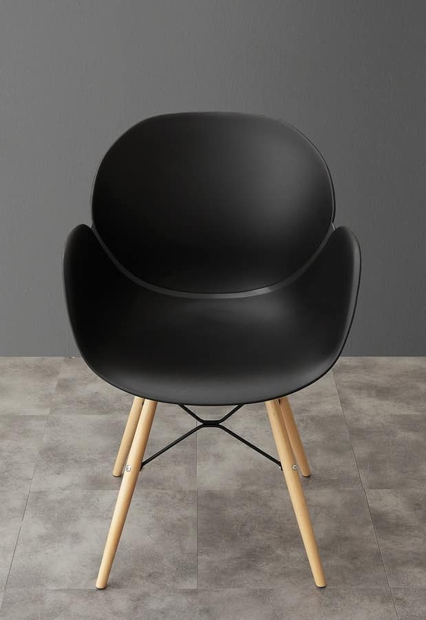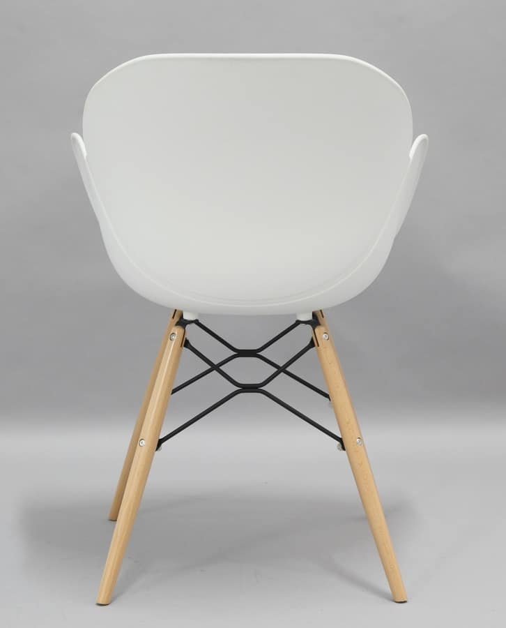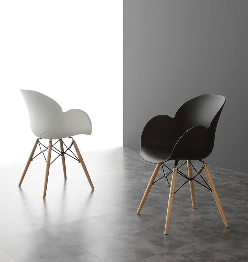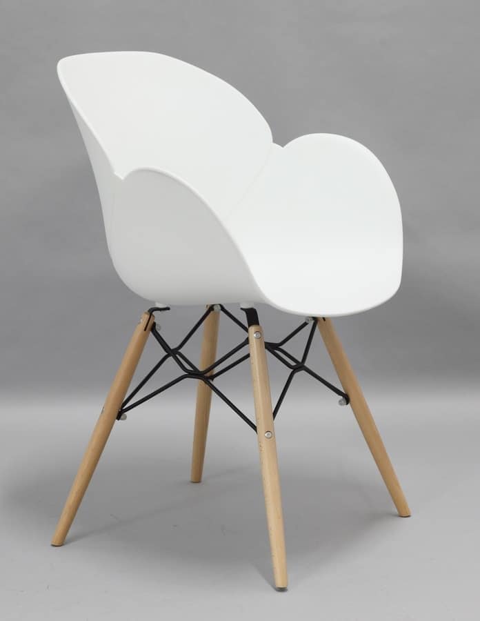 Elegante poltroncina con scocca in polipropilene, gambe in legno