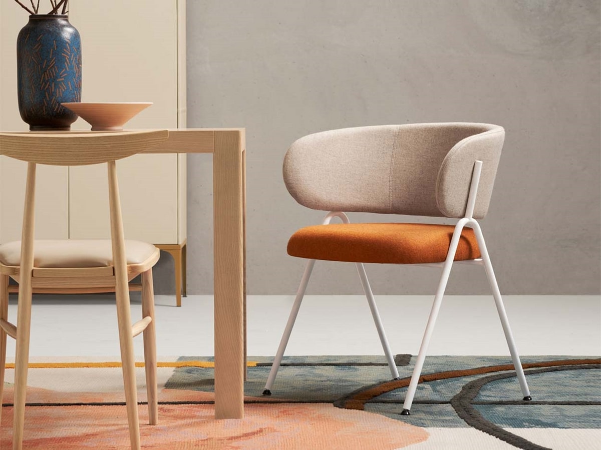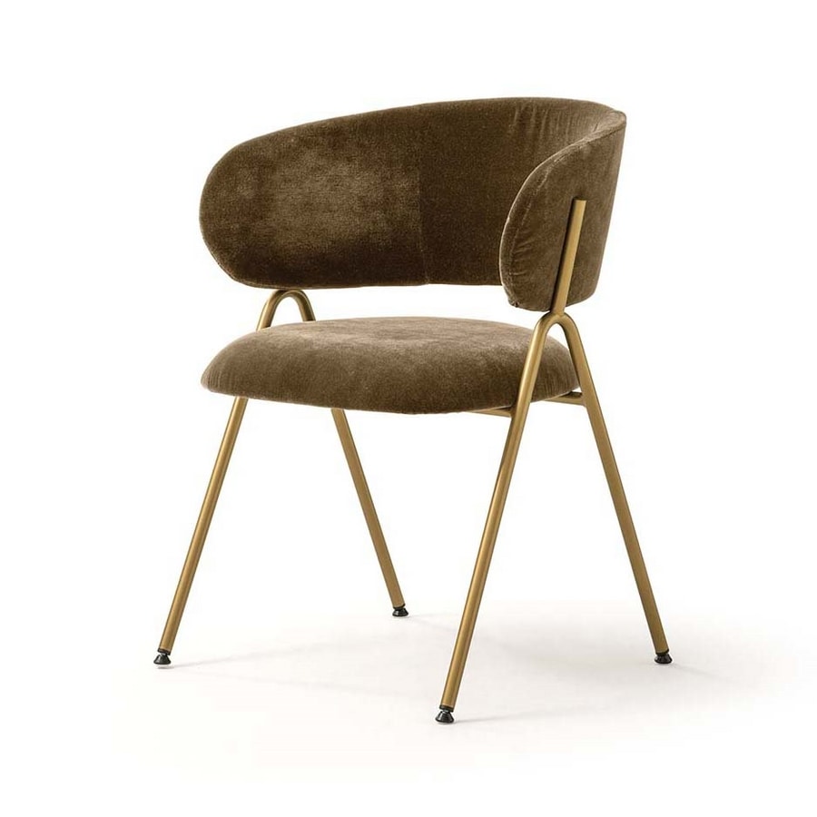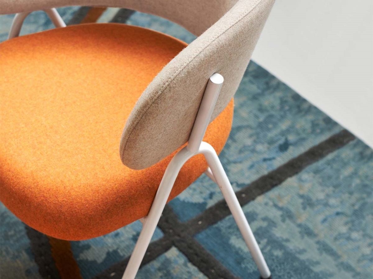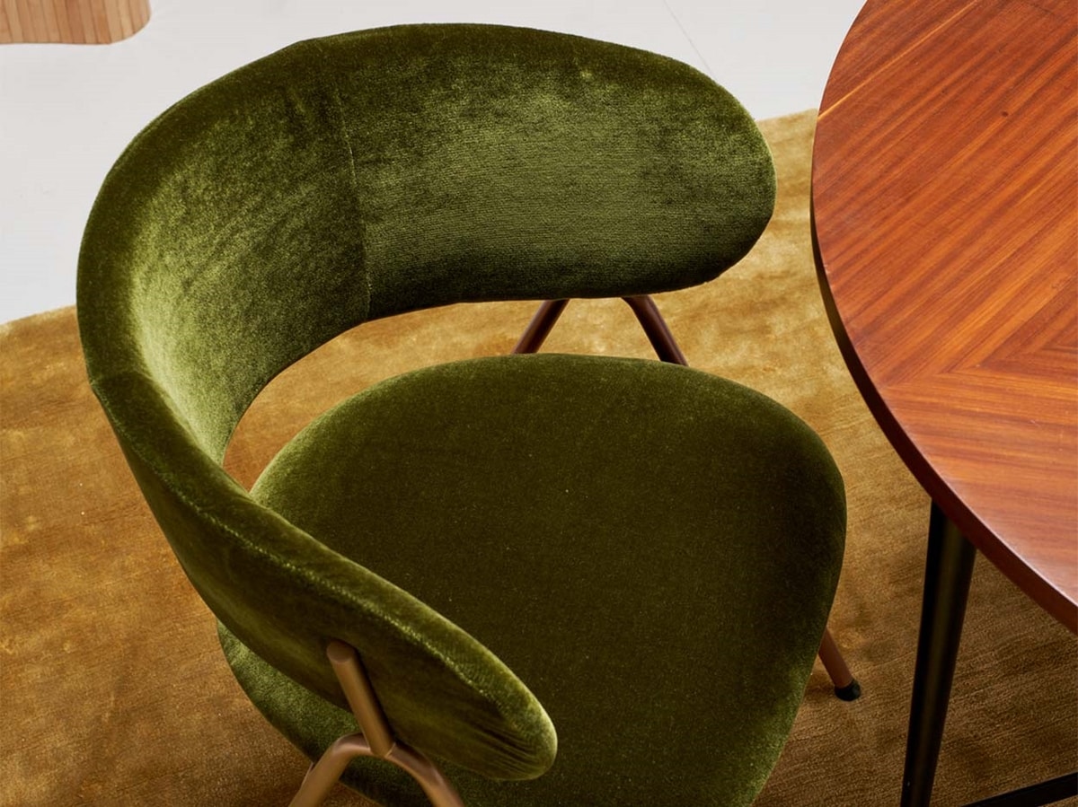 Richiedi prezzi Prodotti similiPoltroncina con struttura in metallo verniciato. Seduta e schienale imbottiti e rivestiti in tessuto, similpelle o velluto.