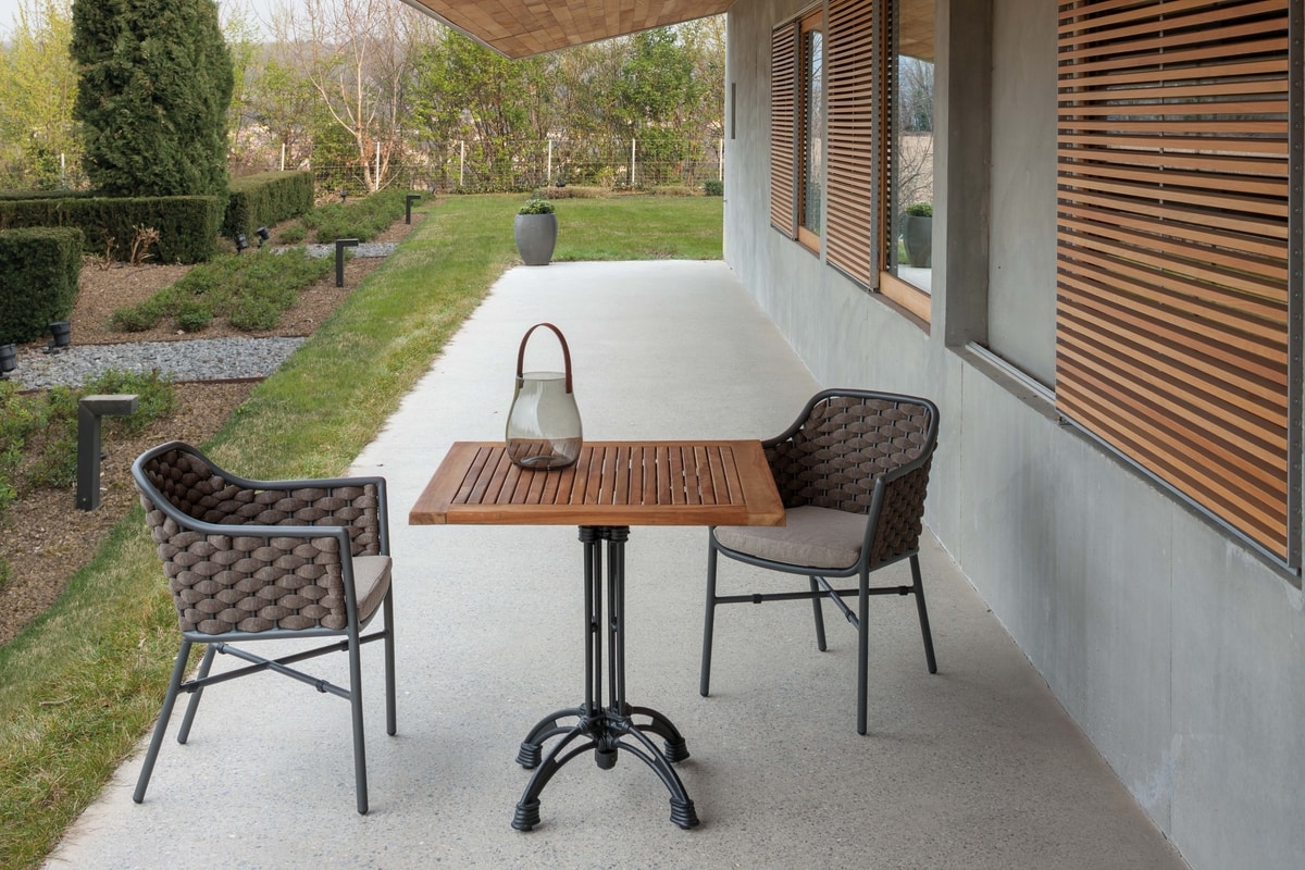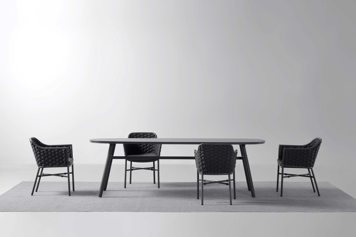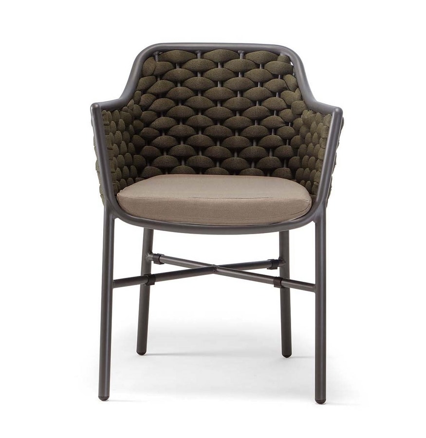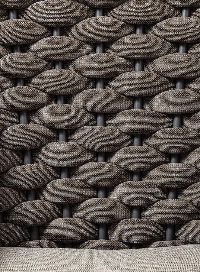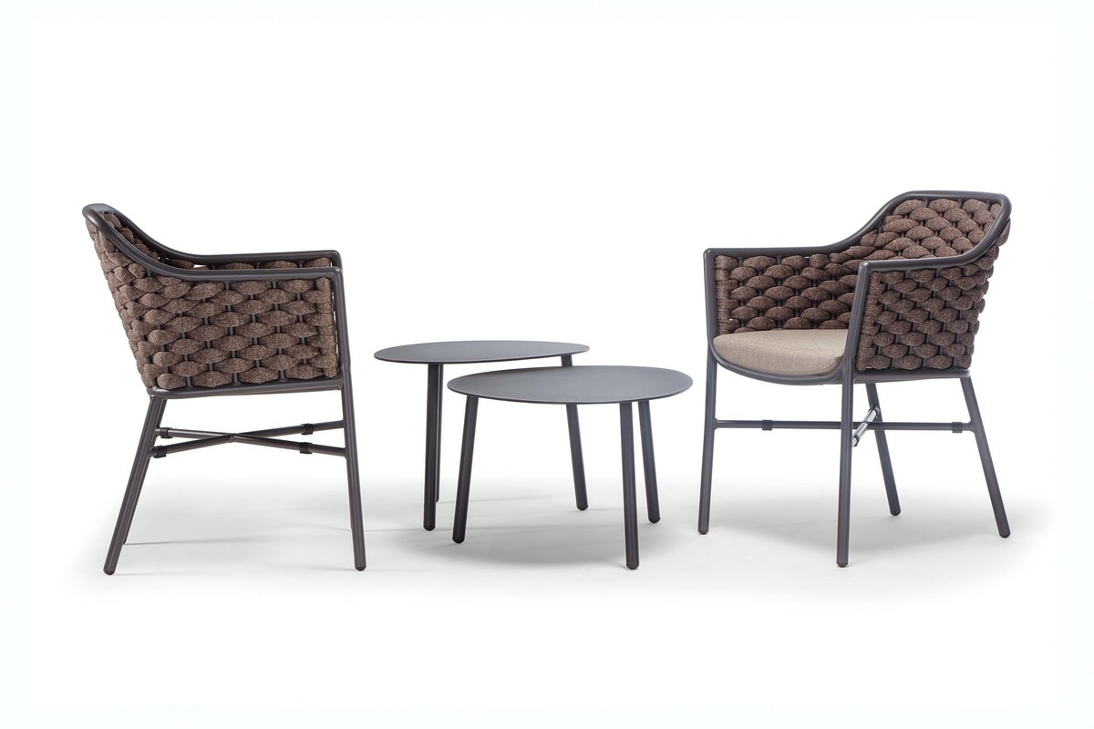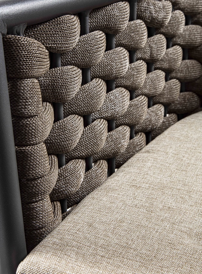Telaio in alluminio verniciato, rivestimento intrecciato in textilene e gomma.