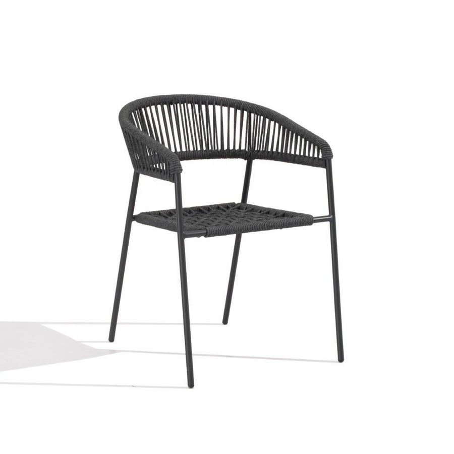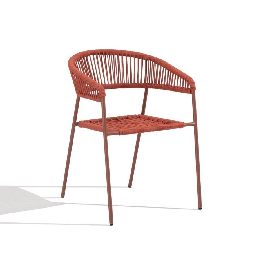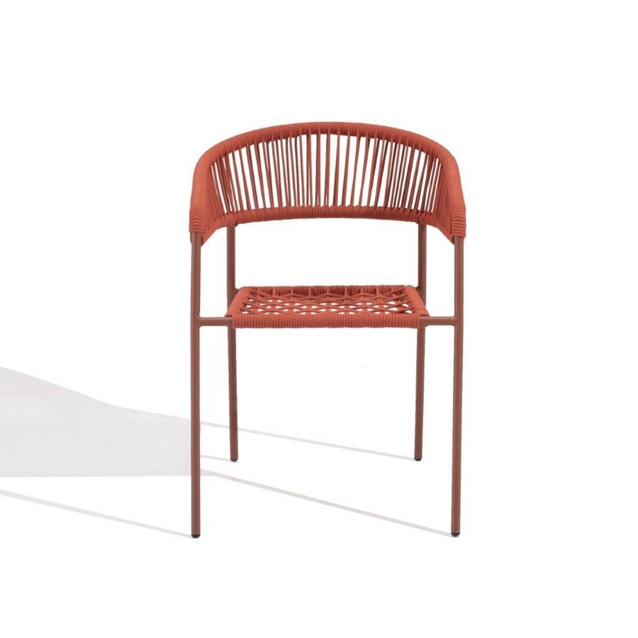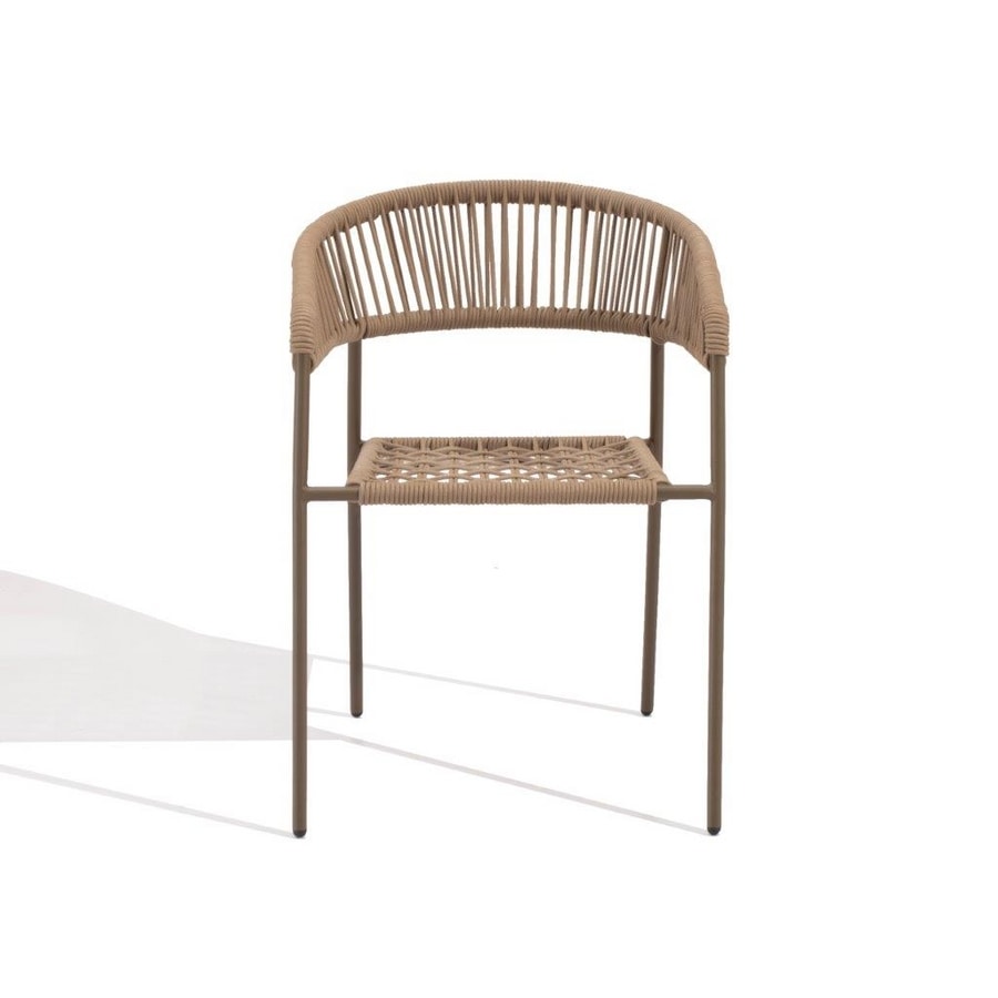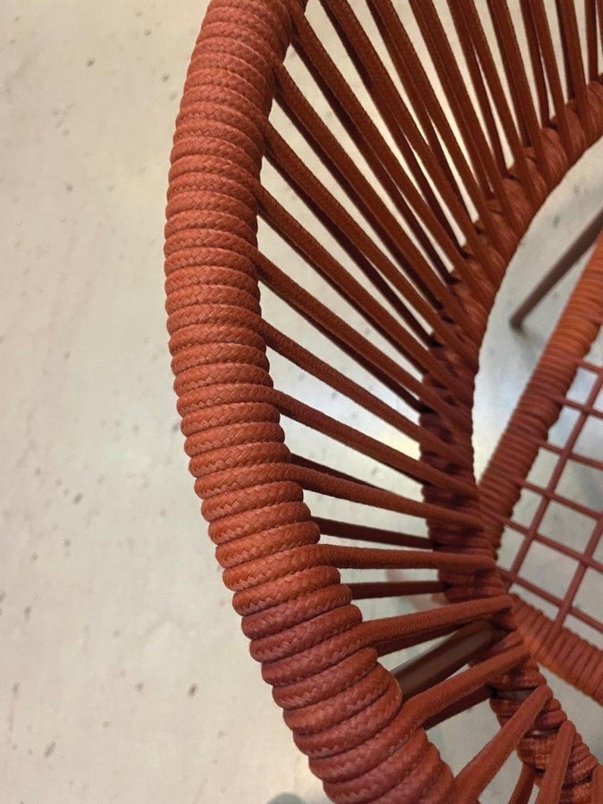 Telaio in metallo verniciato per esterni, rivestimento in corda sintetica intrecciata.