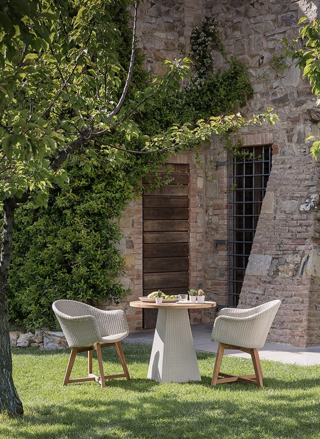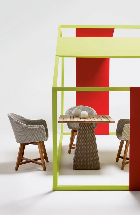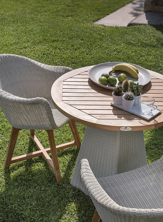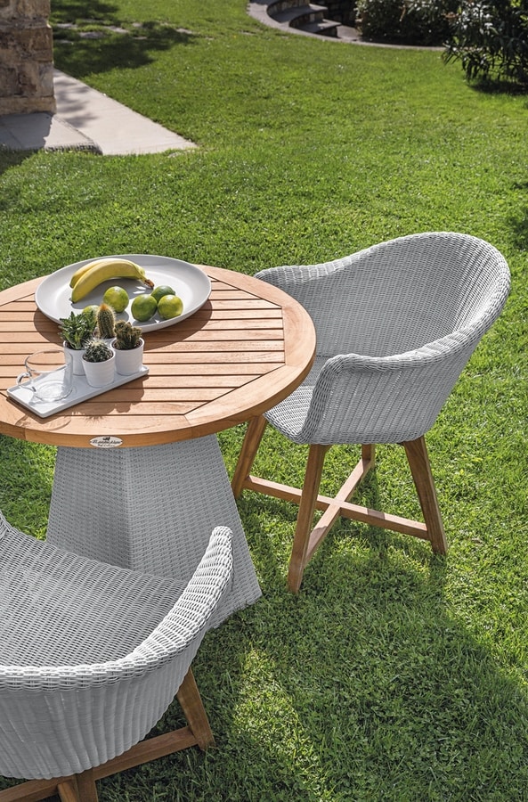 Richiedi prezzi Prodotti similiLegata alla tradizione per la sua connotazione lignea, nasconde una struttura metallica per la seduta su cui è intrecciata la fibra Core. Il design anni sessanta e la grande eleganza formale sono i punti di forza di questa poltroncina dall'estrema comodità. Sedia con braccioli comodissima ed ergonomica, costituita di una base in teak ed una seduta in alluminio intrecciato, può essere utilizzata in abbinamento a diversi tipi di tavoli in rattan o teak. Realizzata con una particolare fibra sintetica a sezione tonda con effetto naturale, ruvida al tatto, che conferisce l'aspetto del vero rattan pur mantendendo l' estrema resistenza agli agenti atmosferici tipica delle fibre sintetiche.