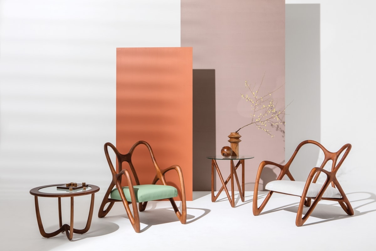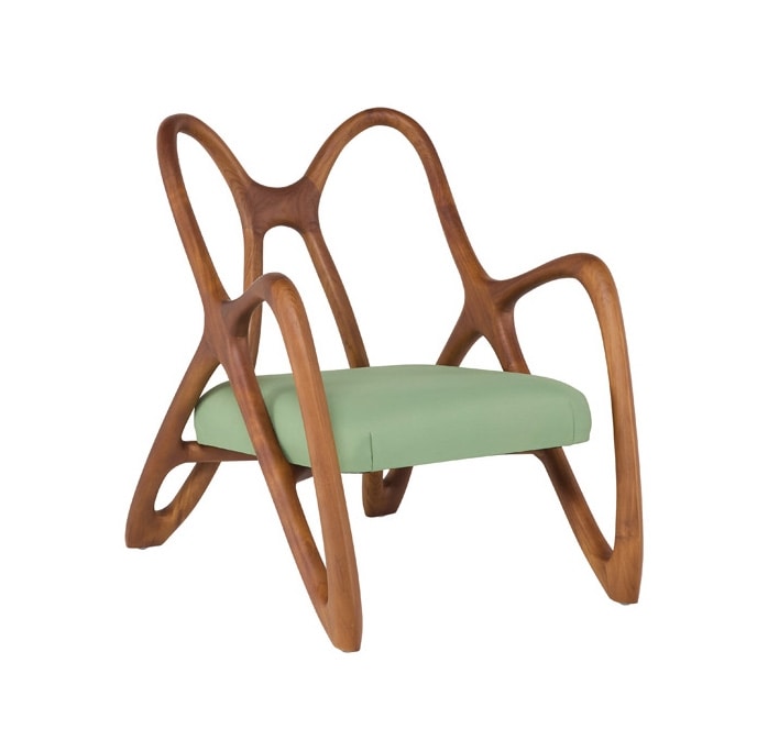 Poltroncina in teak per esterni, ispirata alle farfalle