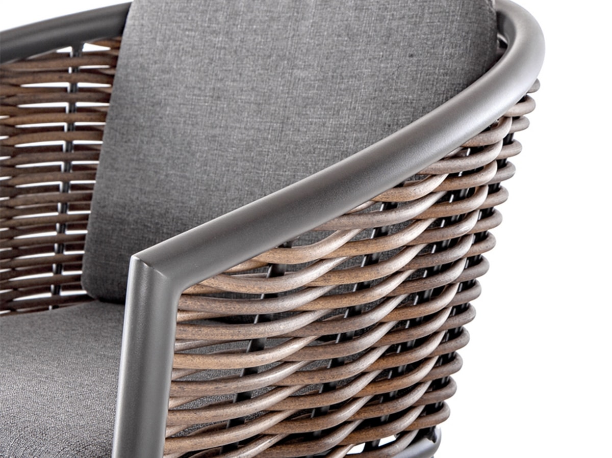 Vivi i tuoi momenti all'aperto immerso in un abbraccio di stile e comodità, creando un'atmosfera accogliente e raffinata nel tuo spazio all'aperto con la poltroncina Vieste.