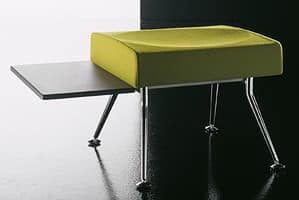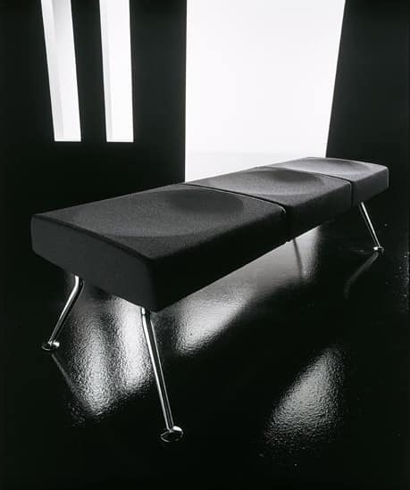 Panca, ideale per il contract e le sale d'attesa, struttura portante in metallo cromato e sedute e braccioli in poliuretano espanso schiumato a freddo ignifugo. Optional: tavolino in mdf nero.