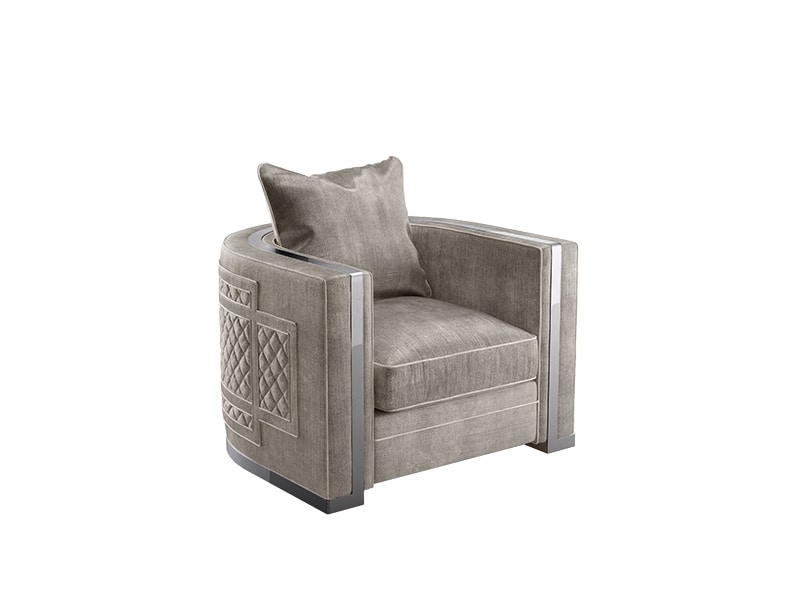 Proporzioni generose e forma avvolgente con dettagli che gli conferiscono un appeal sofisticato, frutto di una costruzione della poltrona piuttosto complessa, resa possibile dall’elevata attitudine sartoriale dell’azienda.