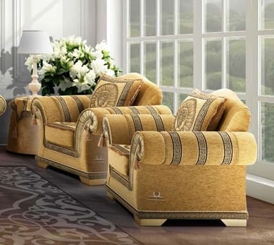 Poltrona classica realizzata con tessuto in categoria M. Cuscini d'arredo compresi nel prezzo. Lo schienale č smontabile. Disponibile di diverse misure e finiture.