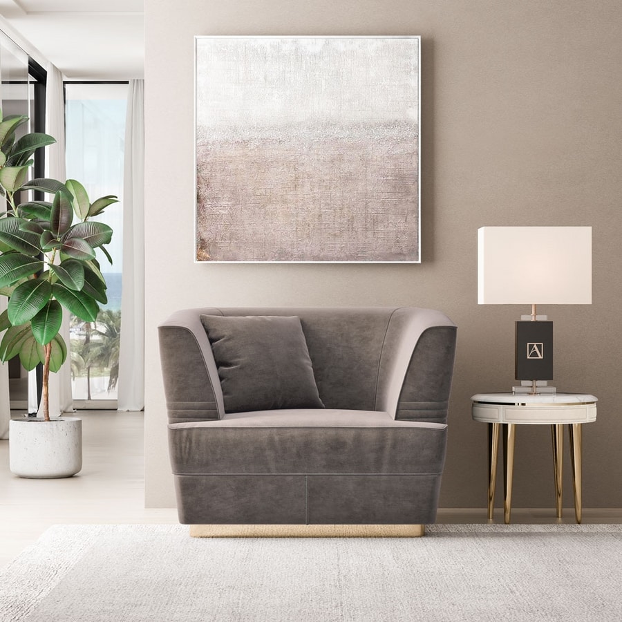 Struttura / Seduta: Telaio in legno con imbottitura in poliuretano espanso a densità differenziate. Seduta con cinghie elastiche.