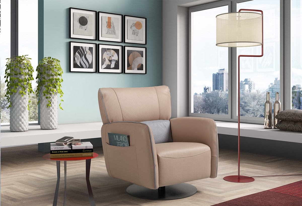 Note: nella versione 1 il modello e` realizzato con lo speciale meccanismo manuale GLIDER, che permette un rilassante effetto dondolo. Su richiesta, il modello puo` essere dotato di una o due comode tasche portariviste poste sul fianco esterno del bracciolo.