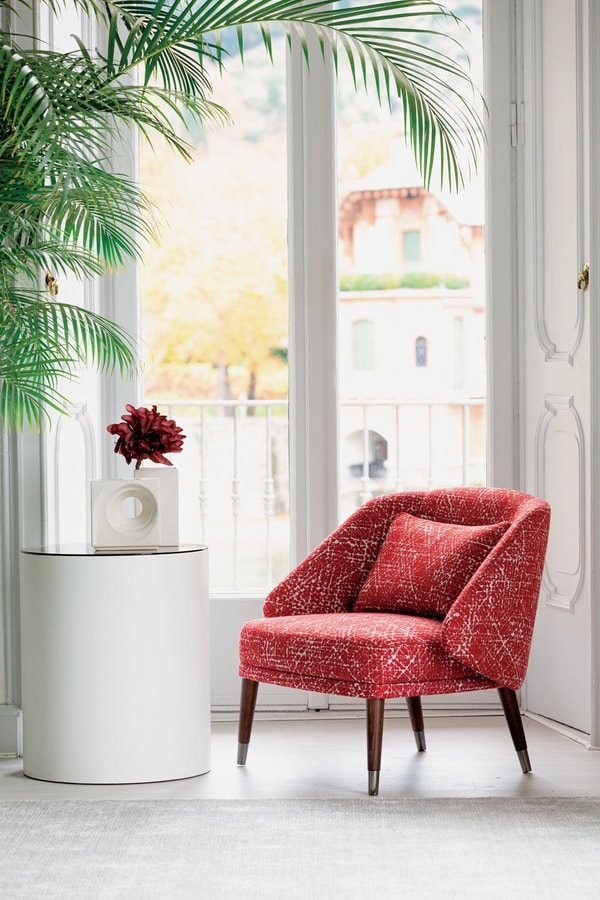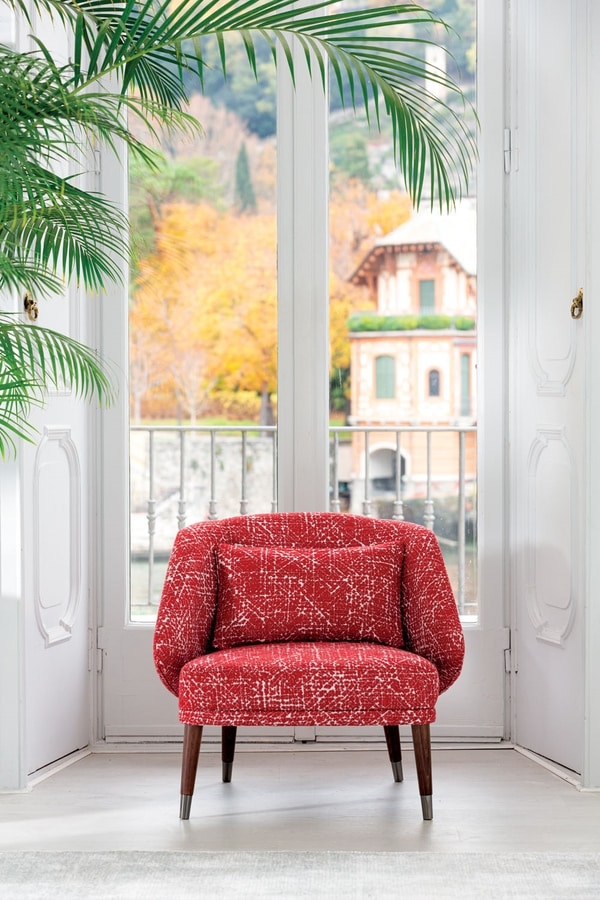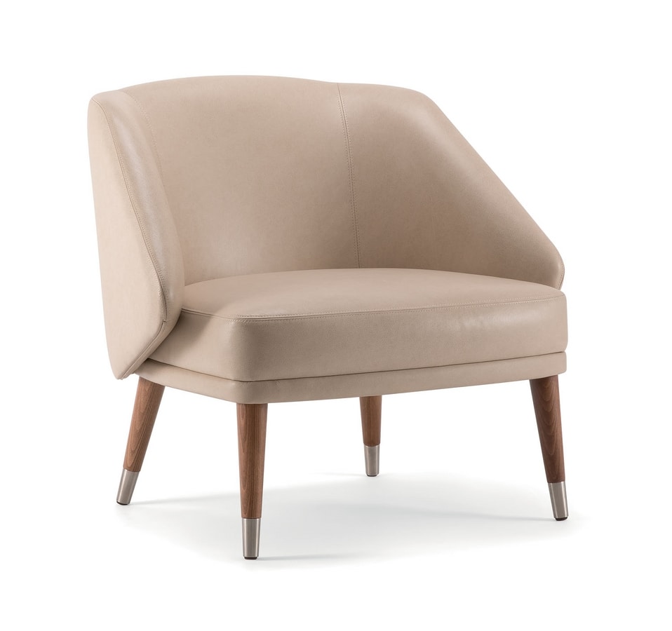 Collezione dal carattere confortevole e comodo con una personalità calda ed accogliente, adatta ad ogni ambiente. La poltrona Meg è composta da due elementi che si fondono sul retro. La seduta, dal profilo quadrato, è imbottita per donare il massimo comfort, ed è incastonata su quattro gambe coniche in legno con coppette in metallo. Lo schienale della poltrona avvolge il sedile, come un mantello, creando una sedia comoda quanto originale. Perfetta per sale d'albergo, aree pubbliche e locali di tendenza.