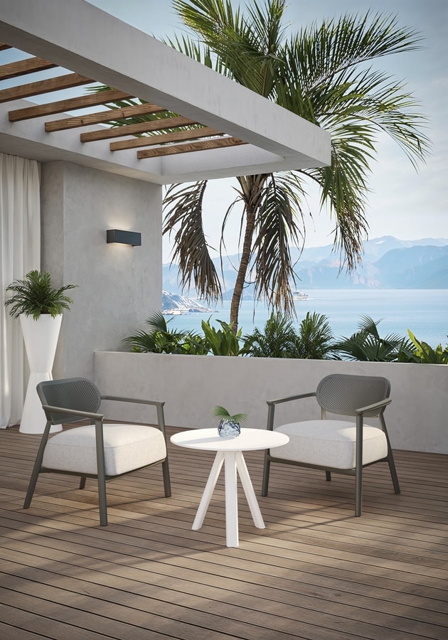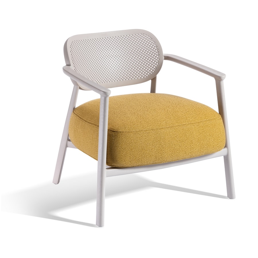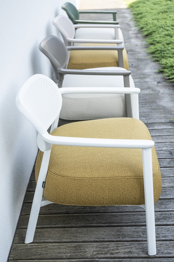 Poltrona in tecnopolimero con braccioli e cuscino integrato