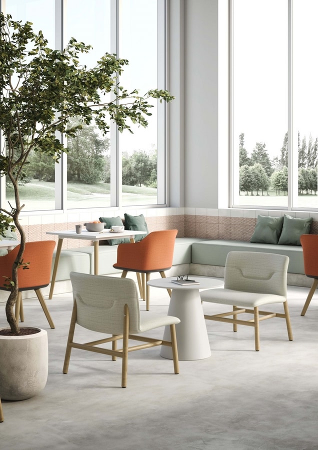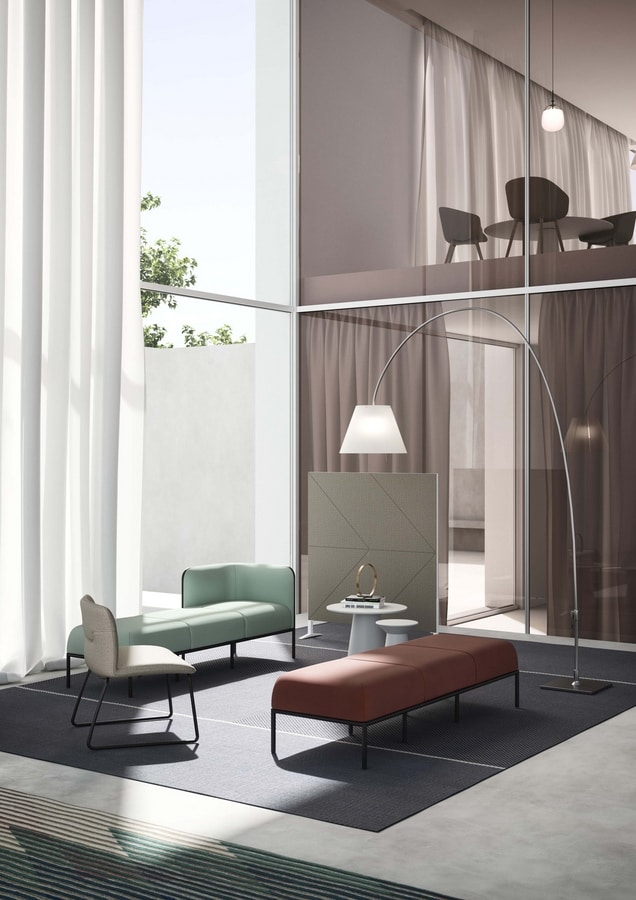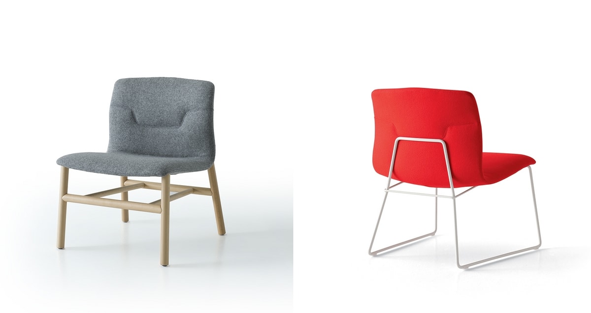 Poltrona imbottita, proposta in diverse soluzioni di base