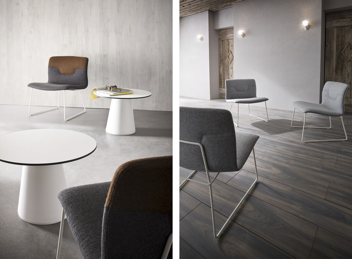 Slot Lounge è un sistema di sedute che unisce funzionalità, stile e leggerezza, con uno schienale confortevole. Il telaio in filo di acciaio è slanciato e leggero, mentre la struttura a quattro gambe in legno massello di faggio è robusta e aggiunge matericità e calore al prodotto.
