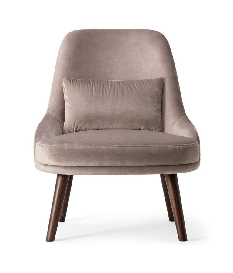 La poltrona Zoe è elegante e confortevole, perfetta per arredare ambienti contract. Lo schienale alto si curva verso i lati per cullare il cliente nella sua seduta profonda. Imbottito generosamente e dotato di un morbido cuscino rende la poltrona rilassante e confortevole. Disponibile in diverse soluzioni di tessuti e tinte legno per abbinarsi ad ogni ambiente.