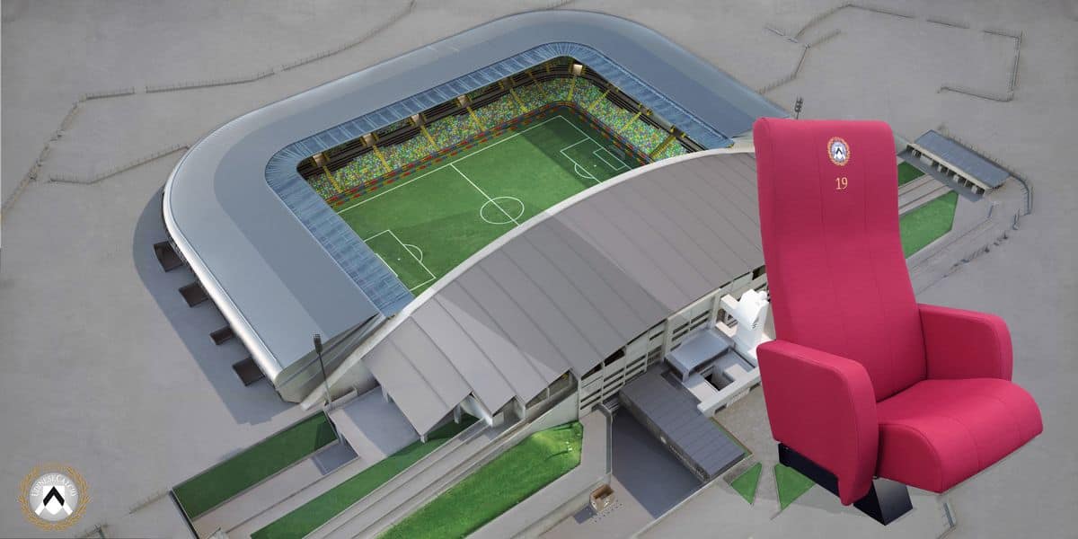 Poltrone imbottite con seduta ribaltabile, ideale per lo stadio. Questa seduta č riscaldata elettricamente, dipone inoltre di un monitor TV nello schienale. Caloi č partner della societą di calcio di Serie A, Udinese Calcio, per la fornitura delle poltrone destinate alla tribuna VIP del rinnovato stadio FRIULI.